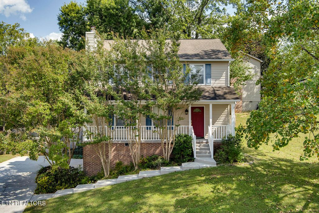 Exceptional West Hills location! This updated home is located in a cul-de-sac in the desirable Vanosdale subdivision. A classic 2 story basement with a covered front porch featuring new hardwood floors on the main level, new carpet upstairs, fresh paint throughout, a beautifully remodeled kitchen, and 3 updated bathrooms. The main level offers a family room with a cozy fireplace flanked by matching bookcases, a formal dining room with 2 large windows providing tons of natural sunlight, and a stunning new kitchen. The light, bright, and airy kitchen has new white shaker style cabinets, beautiful new granite countertops, a large center island, a breakfast nook with a bay window, and all appliances including a refrigerator. Also on the main level is an updated 1/2 bath. Upstairs you will find 3 spacious bedrooms including the primary suite with a vaulted ceiling and a luxurious ensuite bathroom complete with a new marble topped double vanity, new tub and shower combo, tile flooring, and a large walk-in closet. The 2nd updated full bathroom and laundry area with new tile flooring is also on the 2nd level (washer and dryer remains). This lovely home has so much to offer including a new back deck overlooking the private fenced in yard and is close to schools, shopping, restaurants and West Hills Park. Don't miss this gem in the heart of West Knoxville.