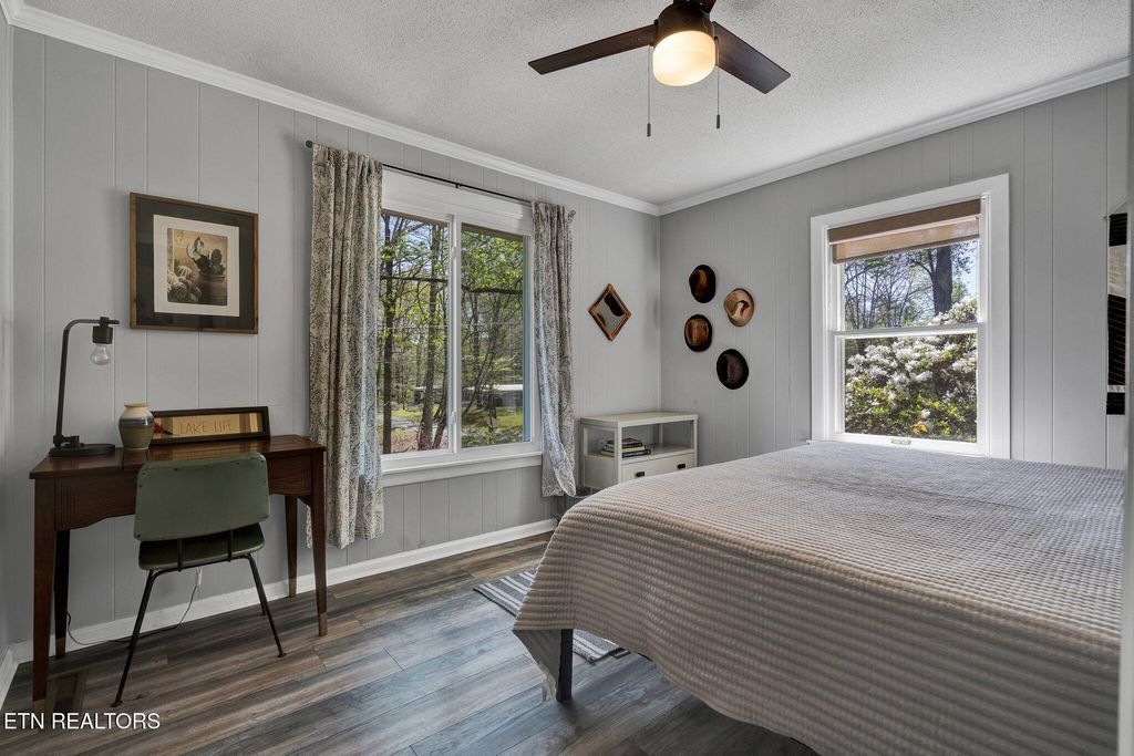 Discover riverside living at its finest in this beautifully renovated home nestled in the sought-after Apollo Shores neighborhood. This spacious 2,260-square-foot residence offers an ideal blend of comfort and riverside charm, featuring three bedrooms and two full bathrooms spread across two thoughtfully designed levels. The main floor welcomes you with contemporary updates, including new windows that frame the scenic views from the front porch. Two well-appointed bedrooms and a full bathroom provide comfortable living spaces, while the inviting living room centers around a versatile fireplace that accommodates both gas and wood-burning options. A distinctive spiral staircase leads to the lower level, where you'll find stamped concrete flooring, an additional bedroom, and a second full bathroom. The home's wraparound front porch serves as an ideal spot to take in breathtaking views of the Tennessee River, perfect for morning coffee or evening relaxation. The Apollo Shores community offers an impressive array of amenities, including a shared dock, boat ramp, playground, picnic pavilion, and parks. Boating enthusiasts will appreciate the easy water access, making this property perfect for weekend getaways or year-round living. Currently operating as a successful short-term rental, this property presents an excellent opportunity for investors or those seeking a vacation home. With ample parking and recent renovations throughout, this riverside retreat combines modern comfort with the peaceful ambiance of a waterfront community.