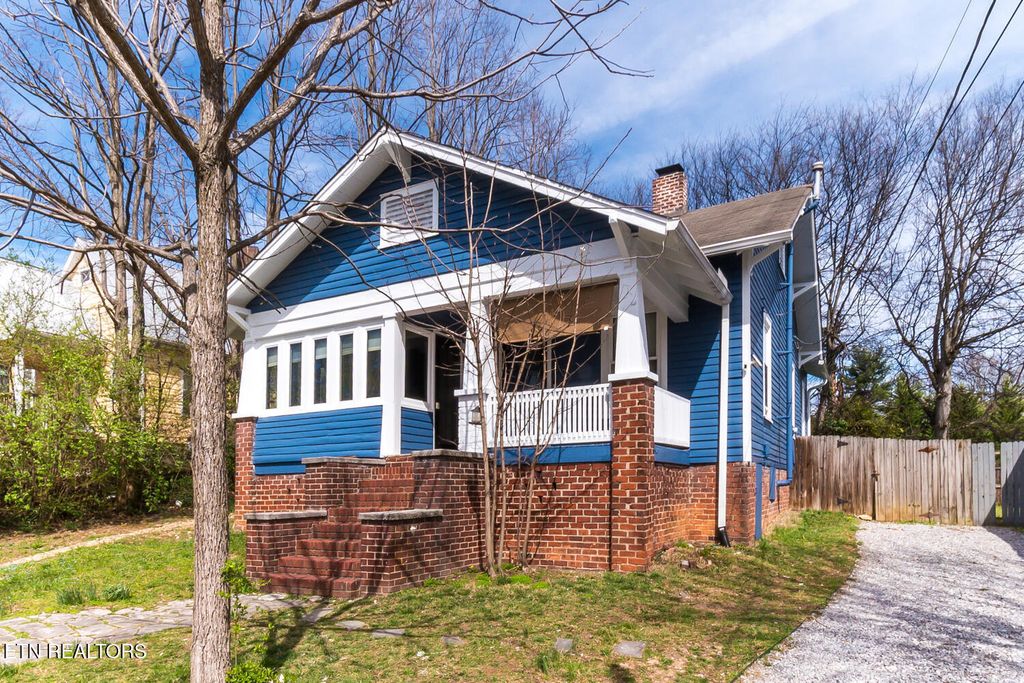 This charming Victorian-era blue bungalow is a true craftsman style home hidden in the corner of Knoxville's historic district, and conveniently walkable to downtown Knoxville. This home is lovingly preserved with the perfect blend of historic yet modern features including a welcoming front porch that oversees the sunset every day, intricate woodwork from the floors to the 10' high ceilings, an original clawfoot tub, and glass windows surrounding the sunroom where you can enjoy your front patio from the indoors. Inside, discover cozy living spaces filled with character in the details of the French doors in the kitchen, the original Victorian style doors and door handles, and the original hardwood floors, perfect for modern living with a touch of vintage flair. This house has been renovated and upgraded from the crawl space to the yard space, to the bathrooms and kitchen! This home is truly unique, in a convenient part of Knoxville, and deserves someone who will create lasting memories for another century.