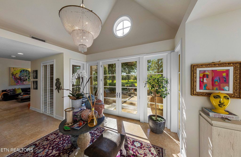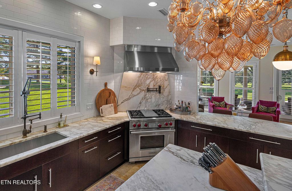 share a Jack & Jill bathroom, ensuring convenience and privacy for guests or family. Step outside to an exceptional outdoor retreat, where lush landscaping surrounds a serene garden bursting with fresh herbs, vegetables, grape vines, and fruit trees, offering a spectacular natural escape. The limestone capped gas firepit and covered veranda, built-in audio sound, and tongue & groove ceilings create an outdoor haven for relaxation or entertaining. The spacious 3-car garage ensures convenience, while the meticulously designed outdoor spaces complete the home's seamless connection to nature and golf course surroundings. Located in prestigious Fox Den Subdivision, this home delivers exclusive country club amenities, a sought-after golf-front lifestyle, and breathtaking architectural excellence. A rare opportunity to own a luxury home of this caliber in one of Knoxville's most desirable communities. Fox Den Country Club is private & offers different levels of memberships and features two restaurants, meeting/conference facilities, workout facility, tennis & racquetball courts and three swimming pools! Schedule your private tour today of this breathtaking home and experience golf-front elegance at its finest!