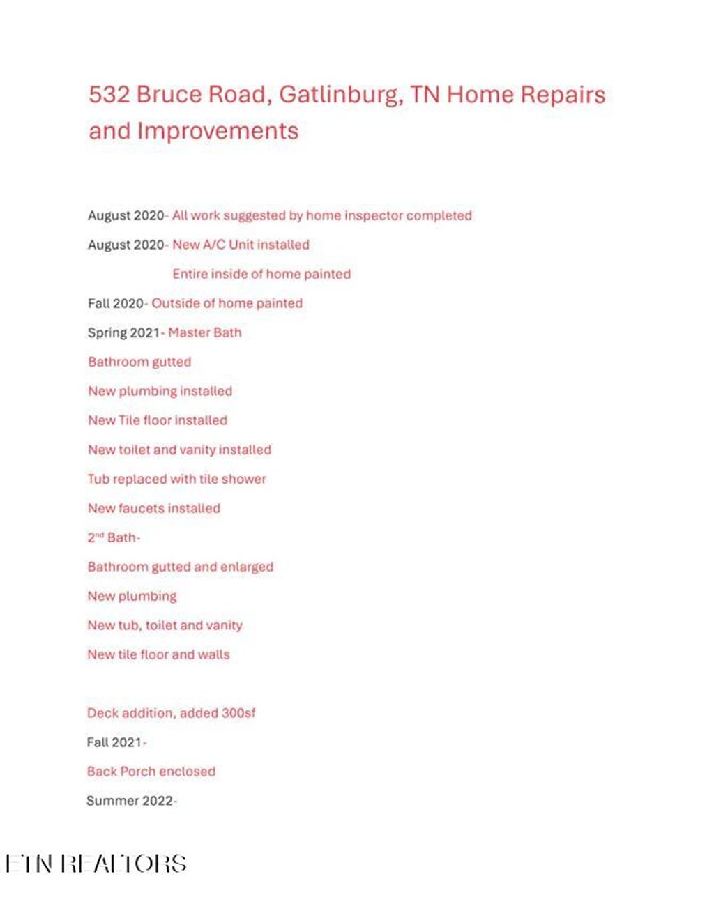Owners are retiring and moving out of state, creating an opportunity for you to enjoy the mountain life. Tucked away in a quiet neighborhood, this home offers you a relaxing life yet moments away from all that Gatlinburg and the Glades Community has to offer. The 3 bedrooms and 2 baths offer room for your family to live comfortably and thrive. Inside or outside, you will have your choice of areas to work from home, do homework or enjoy family time. The deck will be a great place for you to soak in the sunshine and breathe mountain air, while the enclosed sunroom will keep you comfortable as the winter approaches. The downstairs efficiency apartment with its separate entrance and its own outside deck, has room for a family member, mother-in-law or extra income through leasing it out. (No STR allowed.) The current owners have remodeled and upgraded since they bought the home, and a list of the upgrades are in the documents and pictures. Washer and dryer and the extra refrigerator in the garage will stay with the home as well. City Utilities are connected, High Speed internet is available, and trash pickup is provided by the city.