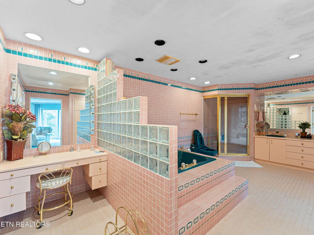 Basement includes kitchen, designer bar, stone fireplace, Family/entertainment & possible 6th bedroom with closet (currently is TV room) & Full Bathroom. MAIN FLOOR: Beautiful entry way with coral chandelier. Stain Glass window & 3 decorative glass & overhead light feature.