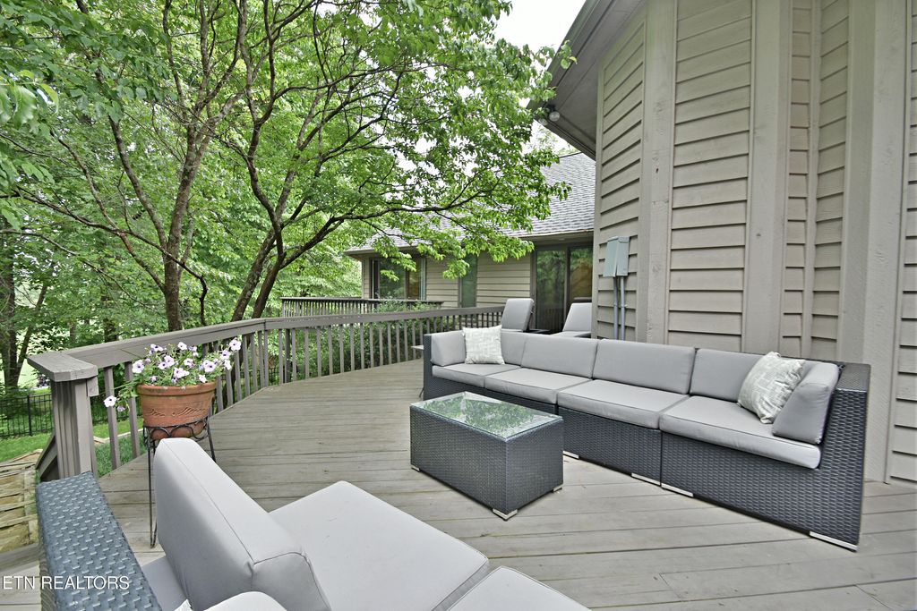 Resting perfectly on Fairway #1, this Fox Den home offers views of the golf course and an easy walk to the clubhouse, pool and tennis courts. With over 1,000 feet of decking, this home is ideal for those who love relaxing, dining and entertaining outdoors. The interior of this home offers open concept living with hardwood floors, ample space for living and entertaining, and large windows filling the home with natural light. The living space - with two fireplaces - allows various seating and dining options with opportunities to create both formal and informal living venues. The updated kitchen is seamlessly accessible from the living space and has a gas cooktop, stainless appliances, double ovens, and more. The primary suite is spacious, offering room for a seating area and an attached updated bath with walk-in shower, dual sinks, soaking tub and walk-in closet. Two additional bedrooms - one currently being used as a home office - as well as two full baths complete the main level of this home. The lower level offers a spacious recreation room and the remaining full bedroom and bath. Walking straight out of the basement into the fenced back yard, this lush lawn is perfect for play. A home truly built for those who love to see and enjoy the outdoors - welcome to Fox Den!