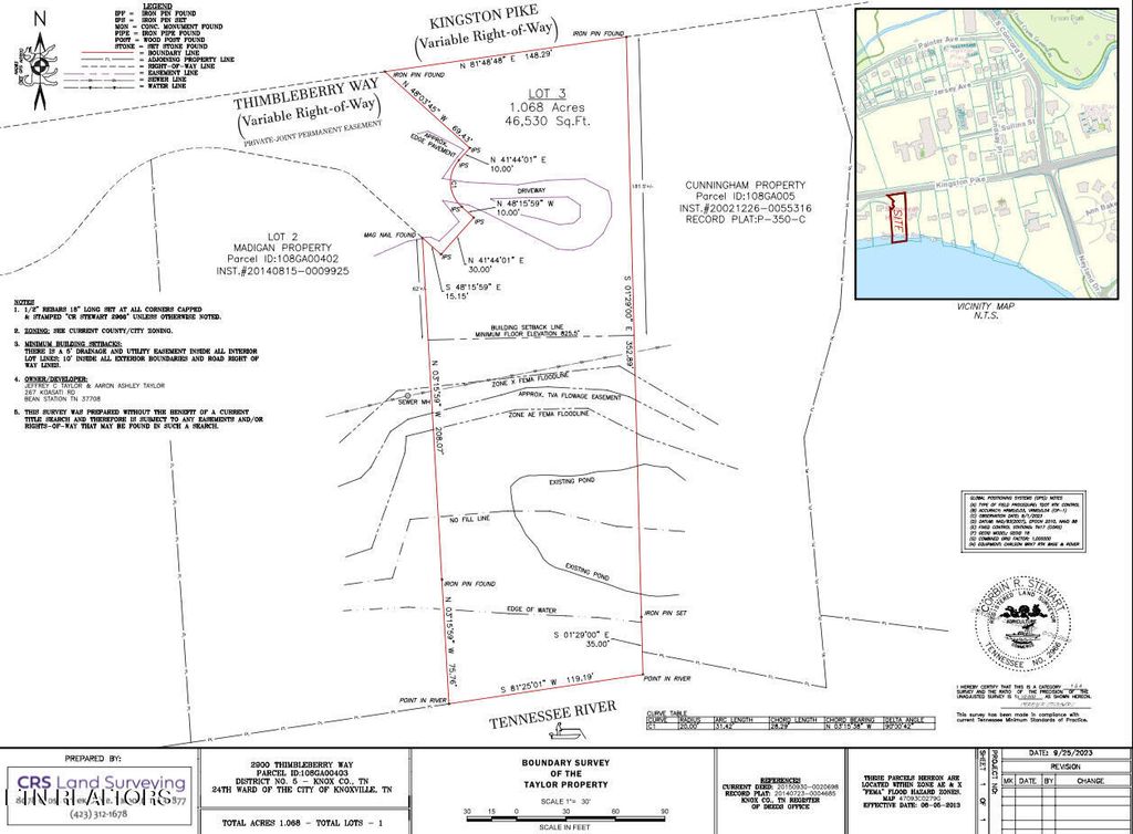 One Acre Riverfront Lot, on the Tennessee River. In the heart of historic, upscale Bearden and Sequoyah Hills area. Five minutes from the University of Tennesse and Interstate I-40. Dream Riverfront Location! Dockable with TVA Permit. Property sits ideally and lays well for home construction. Premlininary architectual renderings, topography and 2023 surveys included in photos. These will be made available upon request. Once a private estate, Thimbleberry Way is now a registered and maintained Knoxville City Street. The lot sits secluded, just off Kingston Pike, near every convenience possible and the interstate connection - which is perfect for commuters! Twenty minutes to McGhee Tyson Airport. Thimbleberry Way is a semi-wooded, peaceful and serene subdivision of three home sights. There are basic restrictions in place, which include minimum residential square footage requirements. It is really amazing to find such a beautiful riverfront lot in Knoxville today, and especially so, in the desirable Bearden area. Tennis facilities, walking paths, gourmet and trendy restaurants, Cherokee Country Club, hardware and boutique shops, grocery stores, Downtown Knoxville, churches, hospitals all nearby and within five minutes - making riverfront daily life an ease and pleasure. The lot is a gem in the heart of it all!
