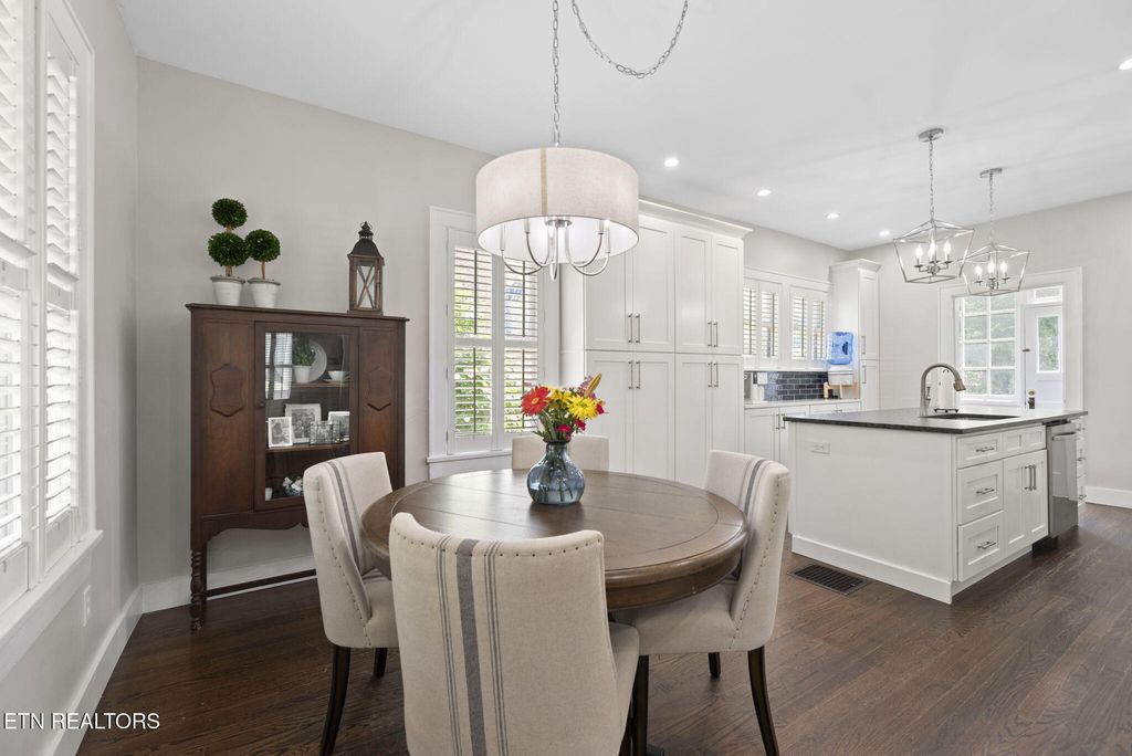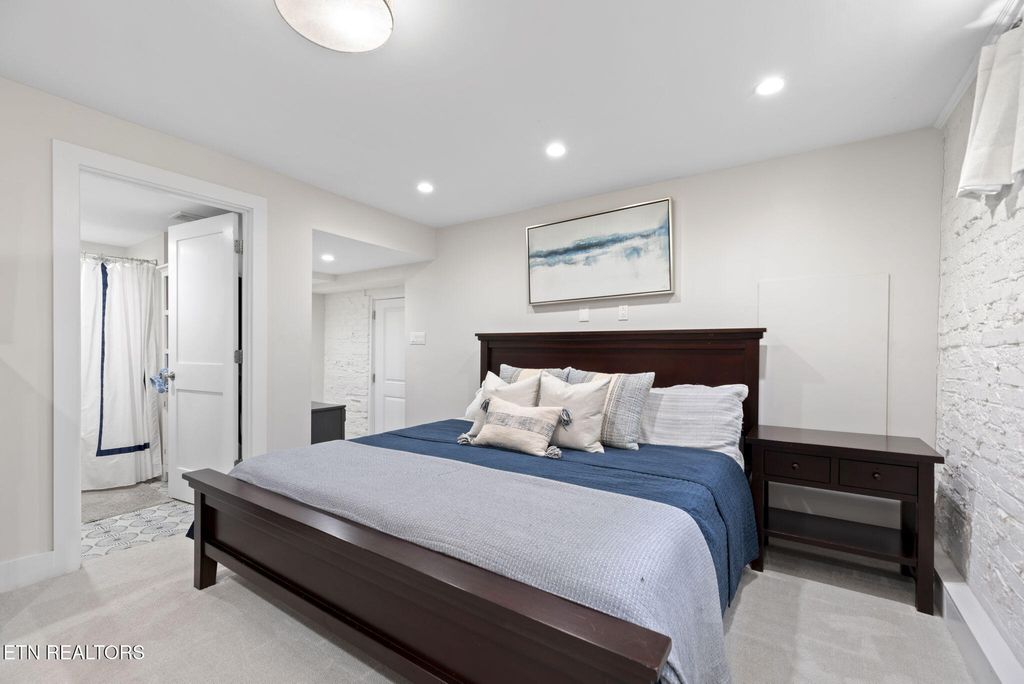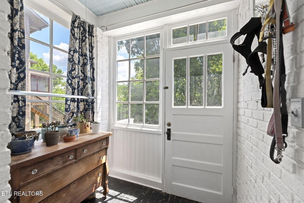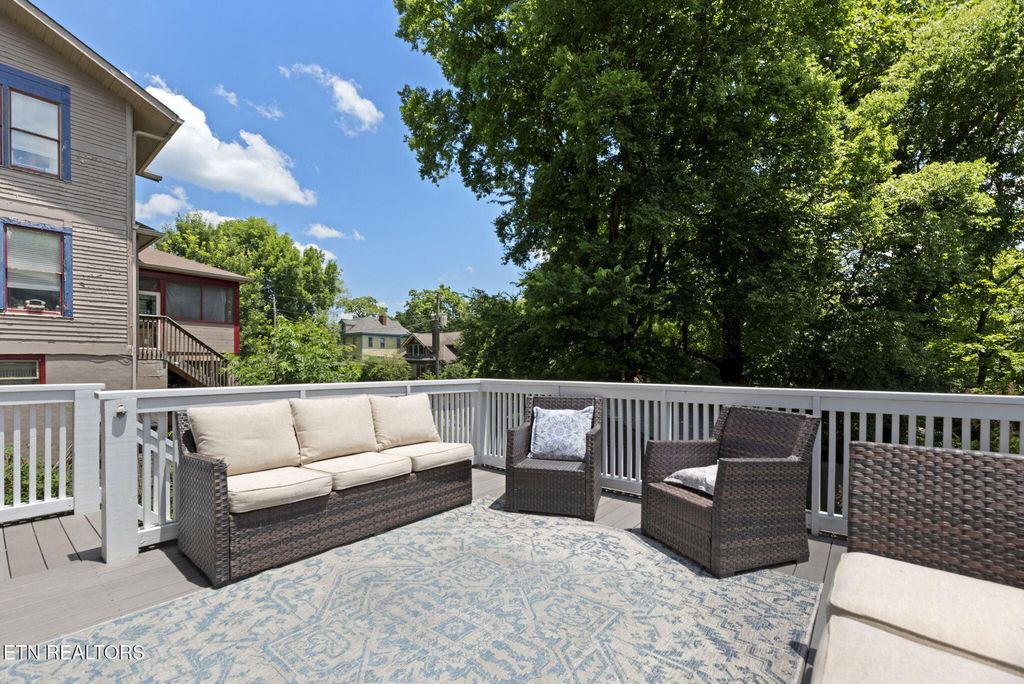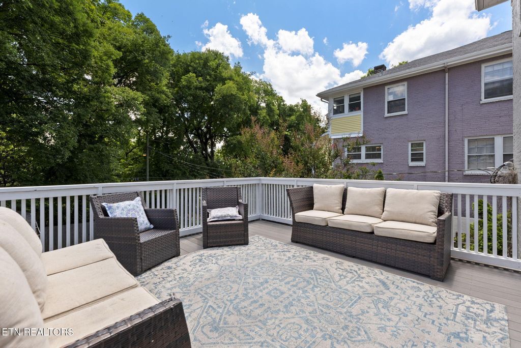 Welcome home to 918 Luttrell St and the historic 4th and Gill neighborhood. The 100-year old brick exterior is as solid as ever and the beautifully updated interior is warm and cozy. Main level features an open layout with tons of light and gleaming hardwood floors. Kitchen updates (2023) include a mix of leathered granite and quartz counter tops with pop up power outlets, tile backsplash, new lighting cabinets and appliances. At the rear of the kitchen, pass through the convenient 'mud room' to the spacious deck overlooking fenced yard and patio. Walk-in pantry is off the kitchen, adjacent to the renovated powder room. Fireplace (not functional) features new tile hearth, creating a beautiful focal point of the living room. Upstairs offers continuation of the hardwood floors, primary bedroom en suite (2023), walk-in shower and walk-in closet, then 2 guest bedrooms, laundry closet and full guest bathroom renovated in style with the early era of the home. Basement can serve as a bonus room, 4th bedroom or primary suite with its renovated bathroom, ample closet space and sitting area. Off the back of the basement is an exposed brick storage room fitting for a wine cellar, as well as access to the lower patio. Additionally in the basement, are large storage and utility rooms. The oversized lot features off-street parking for multiple cars, detached garage (updated 2024), level front and back yards, plus alley access. Other features include: new HVAC, electrical supply for hot tub on lower patio, fenced in yard & trex decking. And just a short walk or scooter ride to downtown, Happy Holler, Smokies Stadium, UT campus and more!