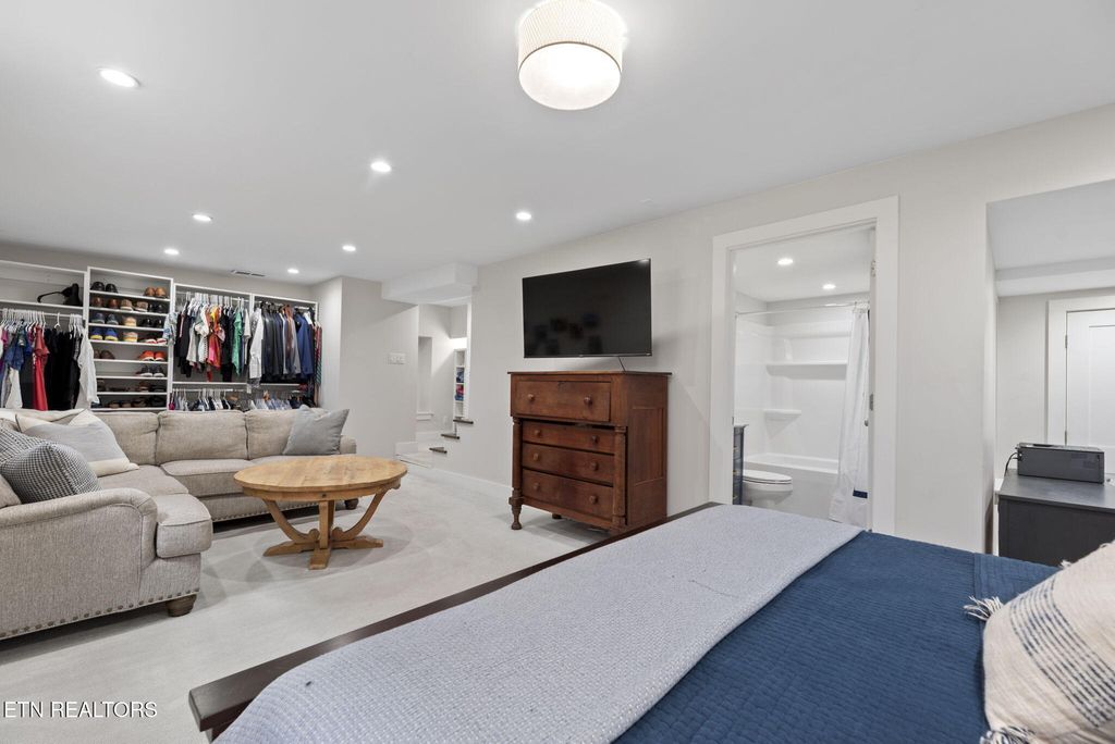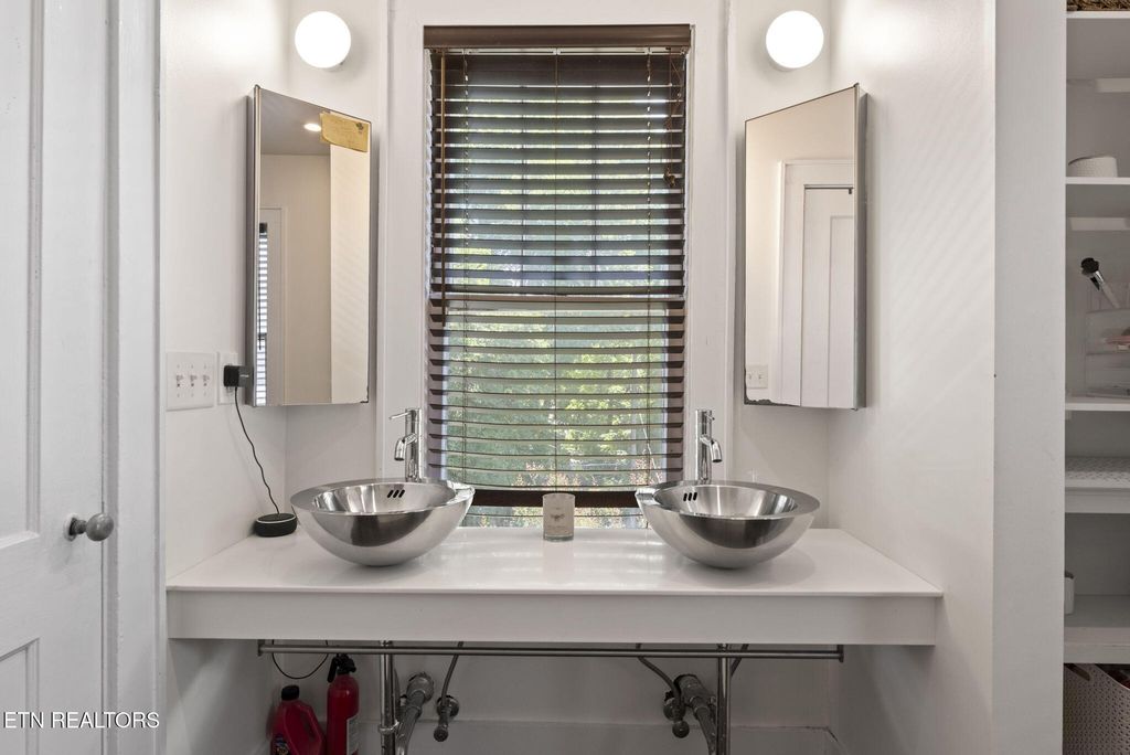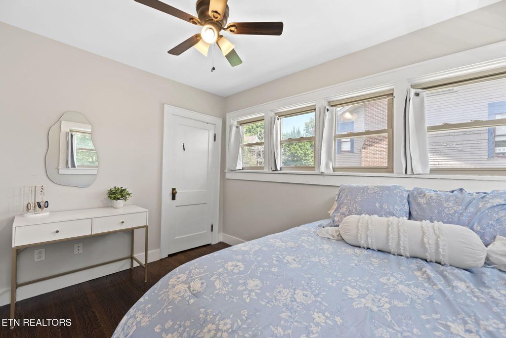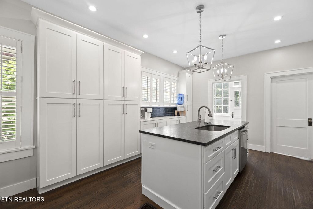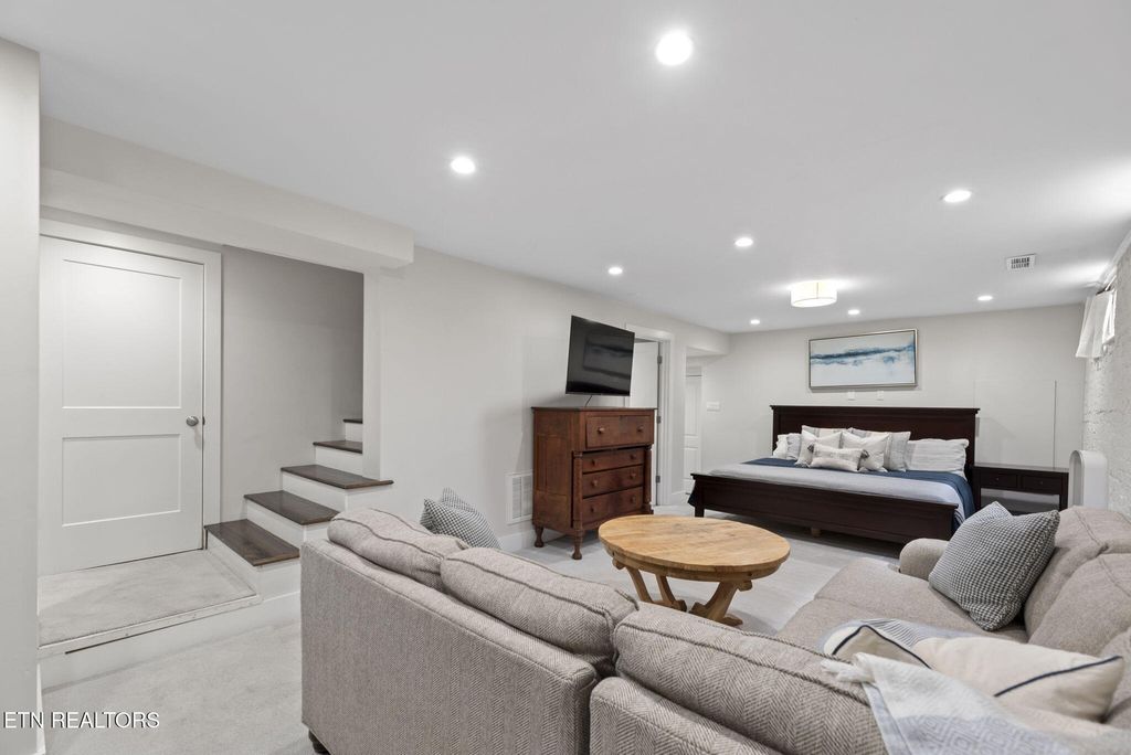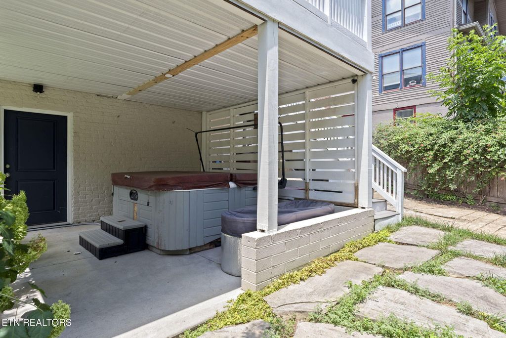 Welcome home to 918 Luttrell St and the historic 4th and Gill neighborhood. The 100-year old brick exterior is as solid as ever and the beautifully updated interior is warm and cozy. Main level features an open layout with tons of light and gleaming hardwood floors. Kitchen updates (2023) include a mix of leathered granite and quartz counter tops with pop up power outlets, tile backsplash, new lighting cabinets and appliances. At the rear of the kitchen, pass through the convenient 'mud room' to the spacious deck overlooking fenced yard and patio. Walk-in pantry is off the kitchen, adjacent to the renovated powder room. Fireplace (not functional) features new tile hearth, creating a beautiful focal point of the living room. Upstairs offers continuation of the hardwood floors, primary bedroom en suite (2023), walk-in shower and walk-in closet, then 2 guest bedrooms, laundry closet and full guest bathroom renovated in style with the early era of the home. Basement can serve as a bonus room, 4th bedroom or primary suite with its renovated bathroom, ample closet space and sitting area. Off the back of the basement is an exposed brick storage room fitting for a wine cellar, as well as access to the lower patio. Additionally in the basement, are large storage and utility rooms. The oversized lot features off-street parking for multiple cars, detached garage (updated 2024), level front and back yards, plus alley access. Other features include: new HVAC, electrical supply for hot tub on lower patio, fenced in yard & trex decking. And just a short walk or scooter ride to downtown, Happy Holler, Smokies Stadium, UT campus and more!