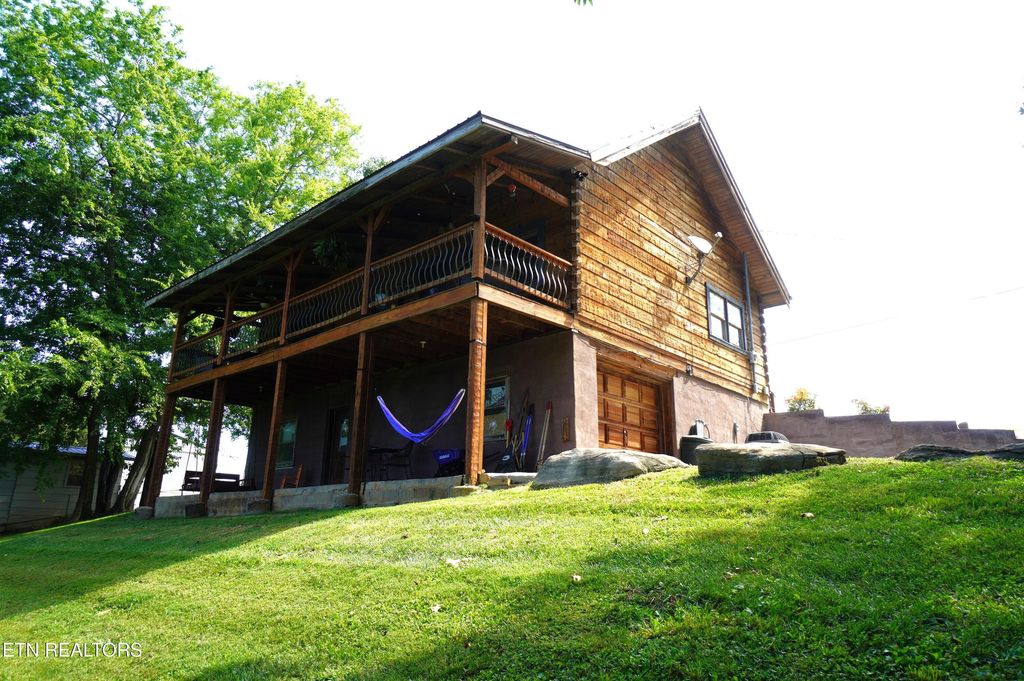 This charming log cabin-style home sits on a deep cove leading to Cherokee's main channel, complete with its own boat dock and abundant wildlife. Enjoy stunning lake and mountain views from the full-length deck and patio, with a spacious layout featuring two large bedrooms and a bath on the main level, another bedroom and bath upstairs, plus a fourth bedroom, den, and one-car garage in the finished basement. Cathedral ceilings, natural woodwork, and a mix of tile, wood, and carpet add character, while recent updates include a new roof and heat pump. Conveniently close to Morristown's shopping, dining, medical facilities, and the exclusive community center The Landing, this home is ideal as a permanent residence, weekend retreat, summer getaway, or income-producing Airbnb. Call today for a private touring.