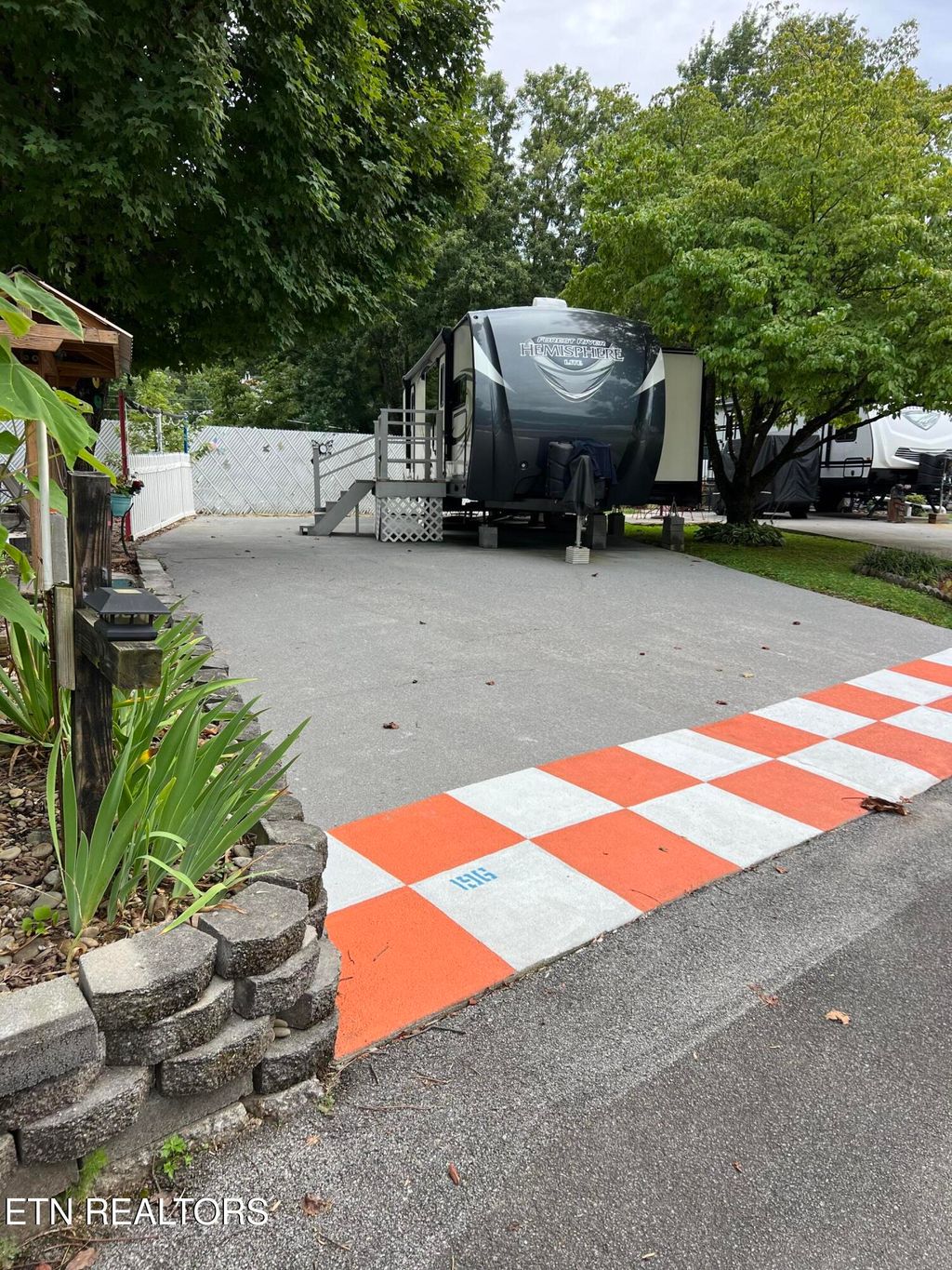 Sundown Resort is a sought after desired location in Townsend, TN Just one mile from the entrance to the Great Smoky Mountains National Park, this property offers natural beauty, and convenience, nice shaded setup under mature trees. The property features a spacious, paved pad with a unique edging of the TN Vols orange-and-white checkerboard, ample parking and eye-catching. The camper is not included, but the site is ready to accommodate your own RV or fifth wheel. Sundown Resort is a gated community with a warm, friendly atmosphere. Enjoy the number of amenities, including two swimming pools, two playgrounds, basketball and pickleball/tennis courts, and scenic walking areas with mountain access. Your low HOA fee includes utilities such as electricity, water, cable, and internet, allowing for stress-free ownership. A generator is required during colder months (late November-March), but owners are welcome to use their property year-round. Located within a short drive to Maryville, Knoxville, Pigeon Forge, and Gatlinburg. You'll enjoy easy access to shopping, dining, and entertainment while being surrounded by nature. Note: Buyer and or Buyers agent to verify all information. Camper shown in photos is not included in the sale, but could be purchased separately.