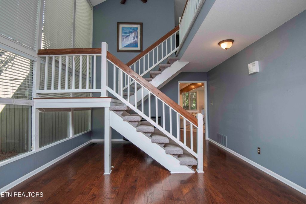 AMAZING PRICE POINT FOR THIS RARE OPPORTUNITY TO OWN A HOME THAT IS GOLF FRONT ON THE 7TH FAIRWAY OF FOX DEN GOLF COURSE IN FARRAGUT, TENNESSEE. THIS HOME SITS ON A LARGE LEVEL LOT WITH ROOM FOR EXPANSION NEAR THE END OF A TREE-LINED SECLUDED CUL-DE-SAC WITHIN THE CELEBRATED FOX DEN NEIGHBORHOOD. GREAT ENTERTAINING HOME; BACKYARD FACES EAST-SOUTHEAST, SHADED FROM THE AFTERNOON/EVENING SUN. INSIDE, YOU WILL FIND A TWO-STORY ENTRANCE WITH A WALL OF WINDOWS WITH AMAZING NATURAL LIGHT. A CATHEDRAL CEILING IN THE LIVING ROOM BOASTS A SEE-THROUGH BRICK FIREPLACE FEATURING HAND HEWN WOOD MANTELS SALVAGED FROM THE GULCH IN NASHVILLE. ALL BEDROOMS UPSTAIRS; INCLUDING A LARGE PRIMARY SUITE WITH A BALCONY OVERLOOKING THE LIVING ROOM. A TOTAL OF 4 BEDROOMS & 2.5 BATHS. FOX DEN COUNTRY CLUB OFFERS SOCIAL & GOLFING MEMBERSHIPS AND FEATURES A BEAUTIFULLY RENOVATED CLUB HOUSE WITH MANY SOCIAL AMENITIES, INCLUDING SEVERAL DINING OPTIONS, GOLF, TENNIS, POOL & FITNESS. ORIGINAL PERMITTED & STAMPED CONSTRUCTION DRAWINGS FROM 1975 ON FILE. BUYER TO VERIFY ALL INFORMATION.