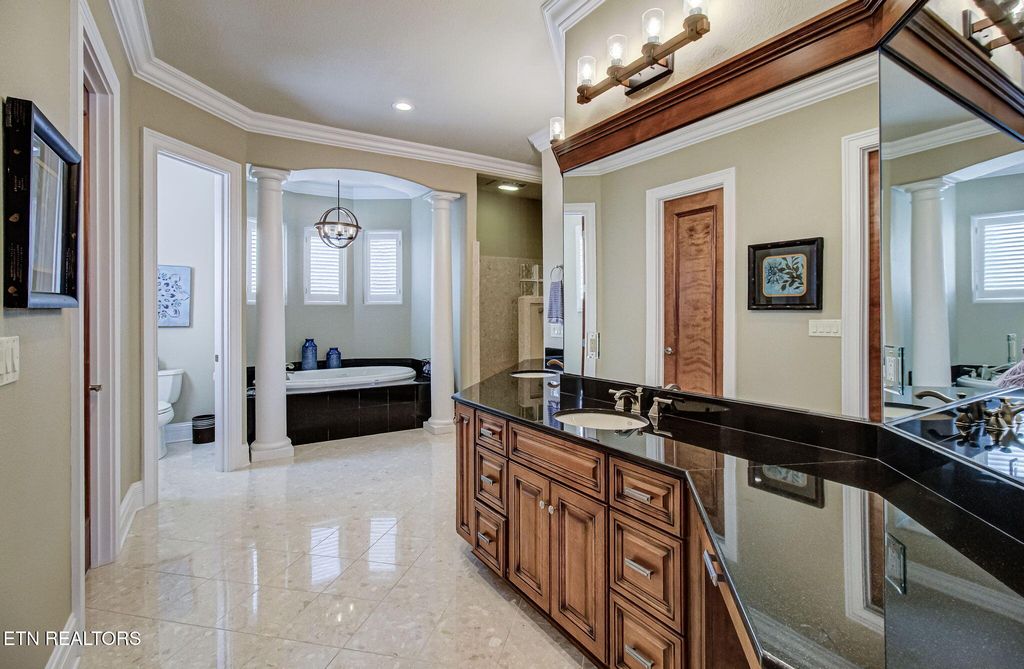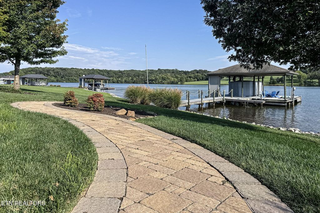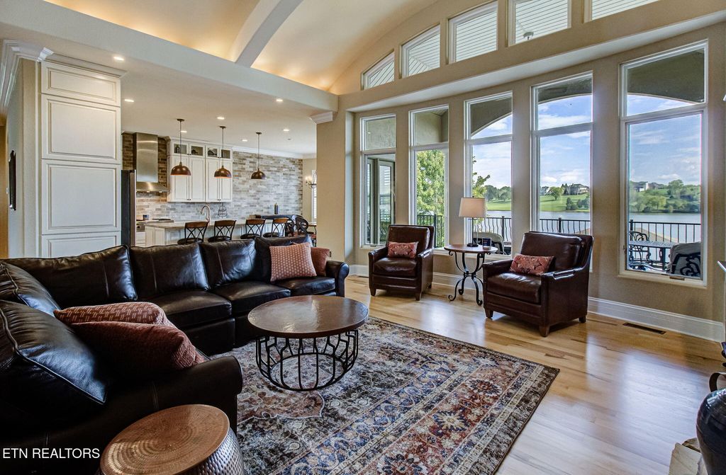 Enjoy one of the most breathtaking views on Tellico Lake with the Great Smoky Mountains as your backdrop. This beautifully updated home offers a heated saltwater pool with paver deck, covered patio, Trex deck, and a terraced walkway leading to a private dock with automatic boat cover and boat lift, two PWC lifts, and plenty of space to relax by the water. Inside, tall ceilings and expansive windows showcase the views the moment you step in. The 2022 updated custom kitchen features an oversized granite island, high-end stainless steel appliances, and a full wall porcelain brick backsplash. Hickory hardwood floors extend throughout the main level, which also includes a spacious guest suite that can serve as an additional primary suite. The owner's suite boasts lake views, tray ceiling, his-and-her closets, whirlpool tub, and a roomy walk-in tile shower. The lower level includes a built-in entertainment center with a 75'' TV with surround sound included, and a bar with GE Monogram refrigerator/ice maker. Additional features include a new tankless water heater (2023), plantation shutters, updated lighting, custom iron and glass entry door, irrigation system, and epoxy garage flooring. Located on a gently sloping 1/3+ acre lot in Tellico Village's Kahite community, you'll enjoy access to an 18-hole championship golf course, community pool, fitness center, tennis/pickleball courts, hiking trails, and community boat launch. This is lakefront living at its finest"”move-in ready and waiting for you.