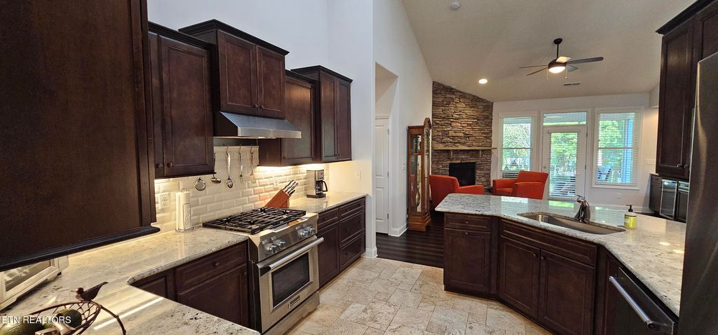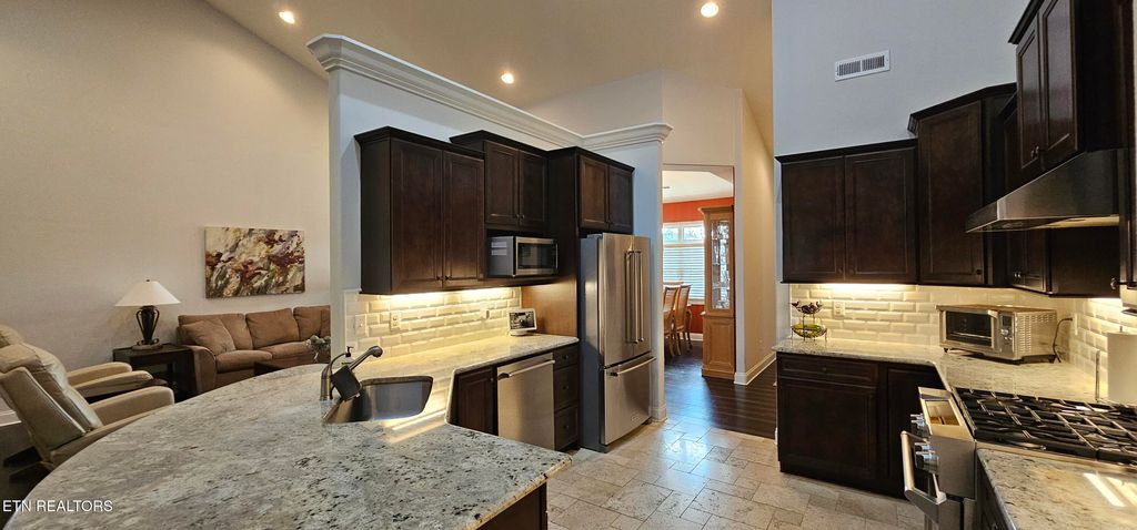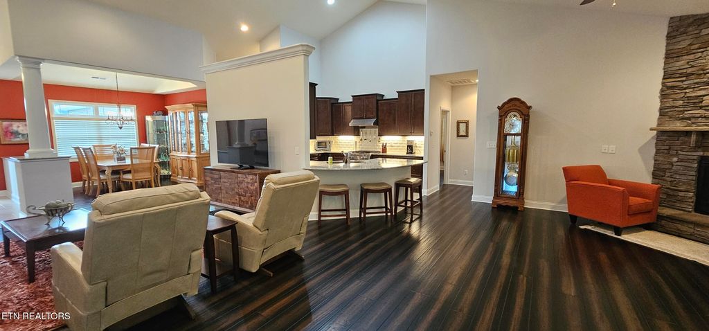 REDUCED! Discover the epitome of upscale living in this meticulously maintained home nestled within the prestigious Kahite neighborhood of Vonore, TN. 3/2 with sunroom, screened porch, grilling patio and 3+car garage. This beautiful residence offers a seamless blend of elegance and comfort. Open floor plan - formal dining room, leading to an open living room and den/breakfast nook with a gas log fireplace and a dry bar with a wine cooler. The kitchen is a chef's delight, featuring granite countertops, a dual-fuel gas range/oven, and ample counter/prep space. The split-bedroom floor plan ensures privacy, with two large guest bedrooms and a full bath at one end of the home. The spacious main ensuite bedroom is a true retreat, boasting a large walk-in closet, double vanity, walk-in shower, and a luxurious soaking tub. This home is designed for seamless indoor-outdoor living, with a sunroom and a screened-in porch perfect for enjoying the peaceful, wooded private backyard. Additional features include a large laundry room with a sink and a 3-car garage. As a resident of Kahite, you'll have access to an incredible array of amenities including a championship golf course, clubhouse, marina, swimming pool, playground, pickleball and more.
