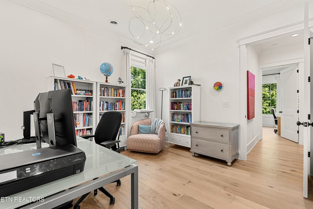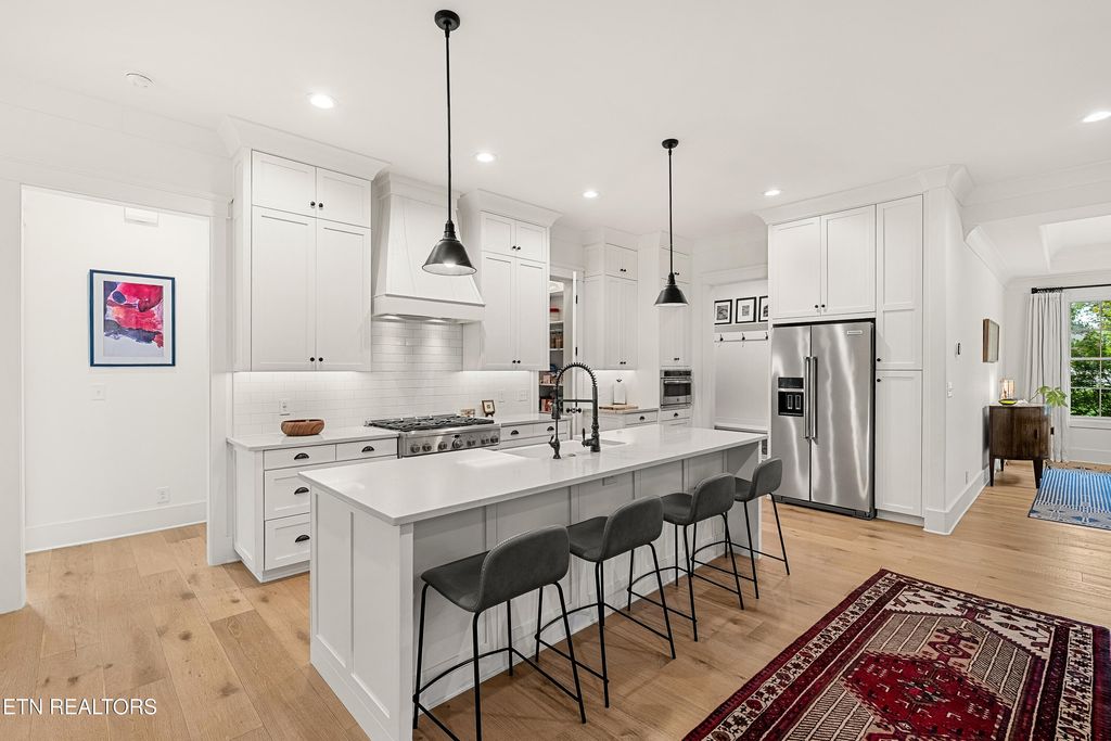 The Farm at Willow Creek greets you with a tree-lined boulevard that leads to a scenic pond and fountain, while winding sidewalks connect seamlessly to Farragut's greenway system and the nearby McFee Park. This home combines modern design with practical everyday living. The main floor showcases 10-foot ceilings, large Pella windows, and a bright, open layout that brings the kitchen, dining, and living areas together. Four bedrooms, including the primary suite with a generous walk-in closet, are located on this level along with three full bathrooms, a laundry room, and a mudroom. A covered back porch with fireplace overlooks a private, fenced yard bordered by trees. The three-car garage includes 12-foot ceilings, epoxy flooring, extra storage, and a 220V outlet. Heading downstairs, the possibilities are endless in the finished walk-out basement. This area offers a spacious bonus room with in-ceiling speakers, a fifth bedroom and full bathroom, as well as space for a workshop and home gym. The utility room with additional storage and shelving is also located on this level, along with a tankless water heater, dehumidifier, and a whole-house Aqua Clear water system. With its blend of high-end finishes, flexible living spaces, and location in one of Farragut's most desirable communities, this property is an exceptional place to call home.