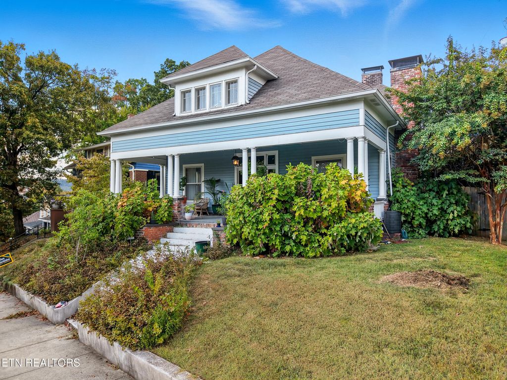 Step into the timeless elegance of 1300 Kenyon, a 1910 Masterpiece where Neoclassical detailing and classic Bungalow charm meet thoughtful, high-end renovations for effortless modern living. One of Old North Knoxville's most celebrated homes, it boasts a striking pyramidal hipped roof and wide dormers that bathe the second floor in natural light, creating airy, welcoming spaces. The gracious first floor follows an elegant center-hall plan, while the expansive front porch"”framed by paired and tripled round columns on sturdy brick piers"”sets the stage for relaxed afternoons and warm gatherings.