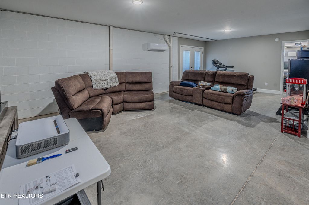 The lower level features a drive-in basement garage with a spacious driveway for plenty of parking. Inside, you'll find a large den area equipped with a mini-split HVAC unit. With rough plumbing for an additional bathroom already in place, it can easily be finished to add approximately 800 more square feet of living space.