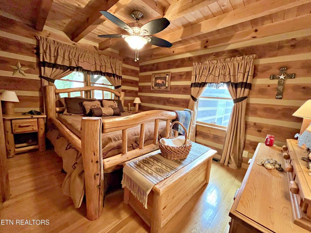 Welcome to this immaculately presented lakefront log cabin on 1.6 acres of beautifully landscaped grounds. Blending rustic charm with modern convenience, this home is designed for both relaxation and entertaining.