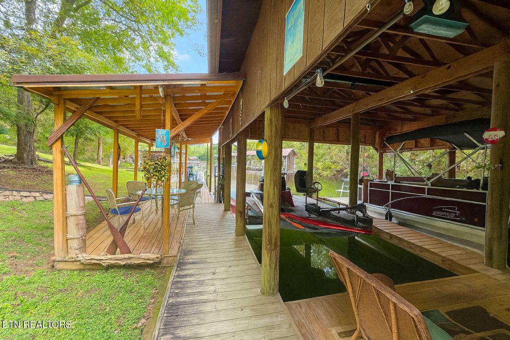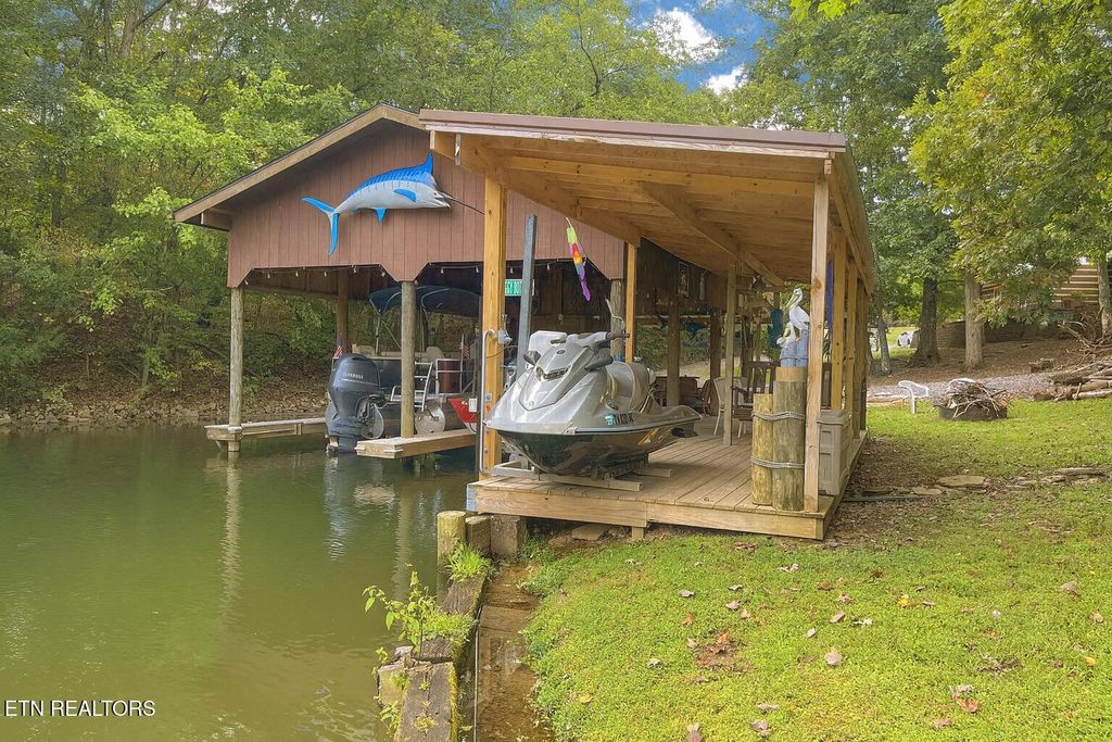 A very gentle slope will take you down to the water's edge and enjoy a private boat ramp and a fabulous dock featuring two boat lifts, a jet ski lift that swings out for ease of use, two sitting areas, and a storage room for all your lake gear. A new sea wall was also recently installed.