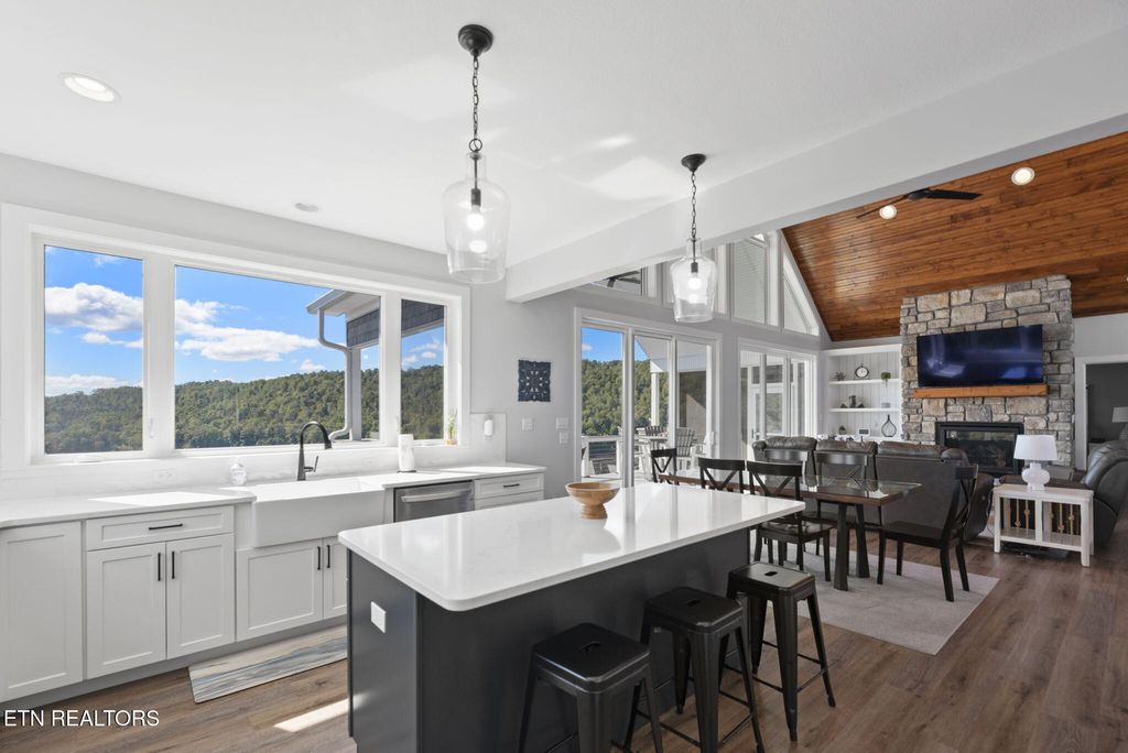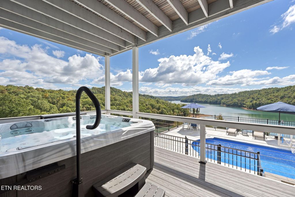 Luxury Lakefront Living in Gated Norris Lake Community. This stunning custom-built home offers breathtaking, panoramic views of Norris Lake and the beautiful mountains from nearly every room. Relax on the expansive decks and enjoy the constant lake breeze, or take in the perfect morning and evening sun"”the home was thoughtfully positioned facing south to capture both. Inside, you'll find an open-concept floor plan with a spacious kitchen featuring quartz countertops and abundant cabinetry, perfect for entertaining. The cozy gas fireplace anchors the living area, while four generously sized bedrooms each feature their own private bath, offering comfort and privacy for family and guests. The lower level provides plenty of space for relaxing or hosting game nights. Floor-to-ceiling windows on the back of the home showcase the stunning lake views, seamlessly blending indoor and outdoor living. Outdoor amenities are equally impressive: a heated in-ground pool, hot tub, and a screened-in porch off the master suite create a private oasis. The detached two-car garage and level circular driveway provide ample parking.
