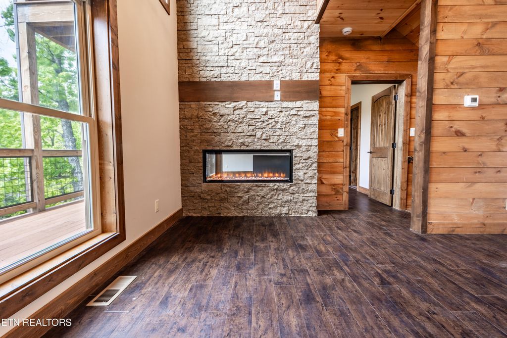 Awesome new construction cabin with breathtaking Smoky Mountain views, designed to maximize both guest appeal and owner profit. Stainless steel kitchen appliances, and luxury finishes will convey to the buyer, making this a true turnkey investment. This brand-new property features high-end upgrades including tongue-and-groove ceilings throughout, a 2-story stone fireplace, quartz countertops, spa-like tiled showers, LVP flooring, spray foam insulation, cement log siding, and a durable metal roof. Additional highlights include a primary suite on the main level, an upstairs sleeping loft, a lower level bedroom for additional guests, and the ability to comfortably sleep 8 heads-in-beds. Outside, guests will love the peaceful setting while still being a short drive to Dollywood (27 minutes), Gatlinburg/Anakeesta (34 minutes), and Knoxville's airport (35 minutes). Enjoy all of this with strong rental potential (similar cabins earned $77K+ GRI in 2023) and a location near the 13-million-visitor Great Smoky Mountains National Park!