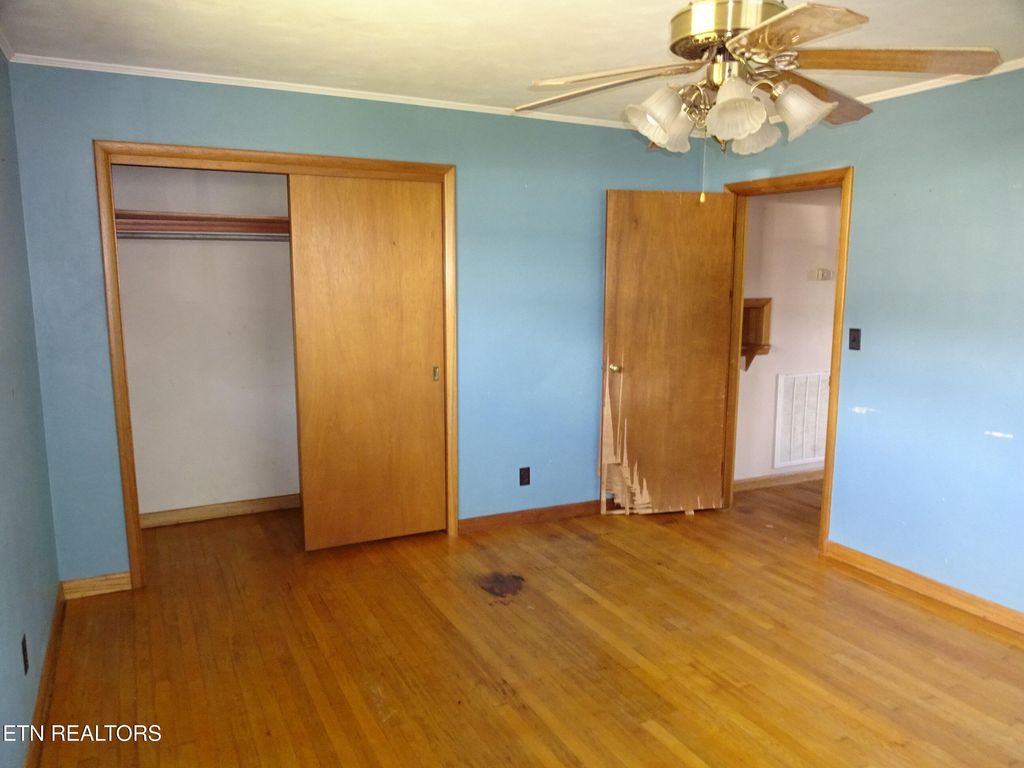 All brick basement ranch home on corner lot in City of Harriman. Nice fix-up opportunity. Exterior features include a covered front porch, wood fenced rear and side yard with double gates, and alley access behind. The unfinished walk-out basement can also be accessed from interior which may offer future lower-level finishing opportunities. Gas forced air heat. Washer/Dryer connections in kitchen. Fireplace may be decorative only. Updating needed. Not in move-in condition. Harriman City utilities. Verify all information including approximate measurements, boundary lines, and overall property condition independently. Sold as-is with no warranties expressed or implied. Proof of financial qualification required with all offers submitted for Seller review. All offers must be submitted by the Buyer Agent via the Seller's Offer Management System. Shown by confirmed appointment only. MUST be on the market 10 days before Seller will begin responding to Offers. Final terms are subject to the terms included in the Seller's Counter Offer Addendum which will be generated once the Seller completes any negotiation. Subject to final Seller Management approval. Transfer by Special Warranty Deed.
