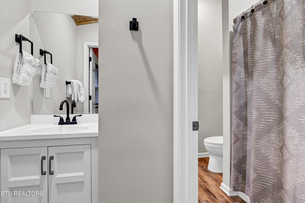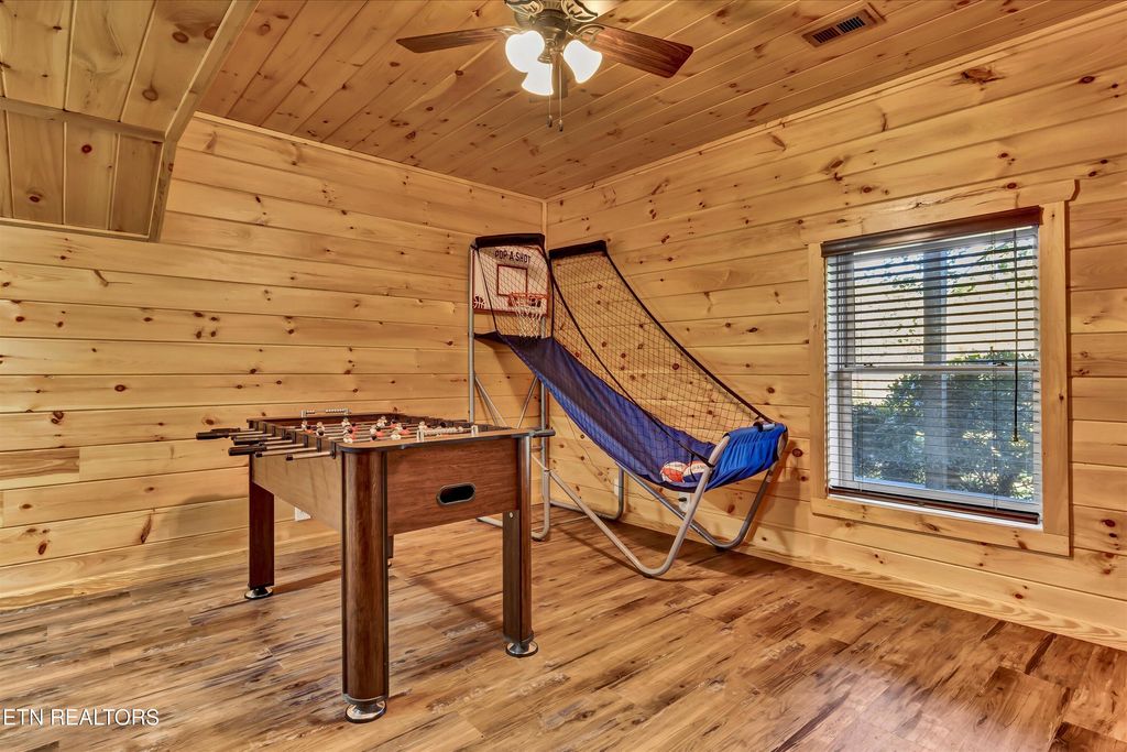 Discover your dream mountain home in the heart of Wears Valley! This beautifully remodeled cabin sits on a serene 1.29-acre lot, fully furnished and turn-key ready, making it the perfect mountain retreat. Enjoy an expansive front yard and a lovely back deck complete with a fire pit and grill for starry evenings. Step inside to a welcoming living room featuring cathedral ceilings, a floor-to-ceiling fireplace, and gleaming wood floors, seamlessly connected to a gourmet kitchen with granite countertops, stainless steel appliances, and a spacious island ideal for entertaining. The main floor also includes a half bath for guests and a spacious KING SIZE MASTER SUITE with an en-suite bathroom. Upstairs, find another KING SIZE MASTER SUITE and a loft that serves as a FORTH BEDROOM with multiple twin beds. The fun continues downstairs with a game area featuring foosball, air hockey, and a movie space, along with a THIRD KING SIZE SUITE. Outside, relax in the hot tub, enjoy a game of cornhole, or host picnics in the large front yard. Ample parking and easy access via paved roads. Owners love spending time with a family in the Great Smoky Mountains. In 2022 they look on a project and turned it into a home away from home for their family and guests: * NEW PAINT inside and out, * NEW LIGHT FIXTURES, * NEW LPV flooring, * ALL NEW BATHROOMS, * NEW KITCHEN granite countertops, backsplash and stainless steel appliance, *WOOD added to walls and ceilings. In 2023 owners replaced carpet on the stairs, NEW SHINGLE ROOF, * ALL NEW FURNITURE, TVS, BLINDS, GAMES, HOT TUB. In 2024 the fireplace was changed to electric, new water heater and water softener. ** drone photography was used.