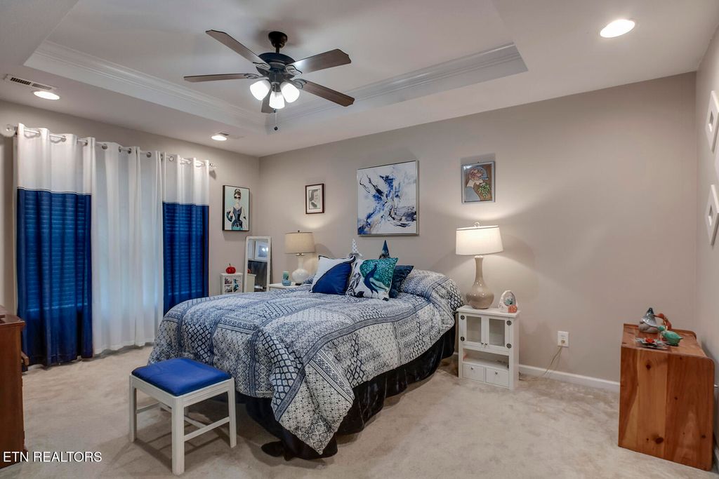 The primary bedroom is a true retreat, with a trey ceiling accented by crown molding, a ceiling fan, and a large window with a peaceful view and natural light. You'll love the HUGE walk-in closet"”this space is truly one to be seen! The en-suite bathroom is equally impressive, featuring a separate jetted tub with a tile surround, a walk-in shower, and a spacious vanity with additional storage. The enclosed water closet adds extra privacy, while the ceramic tile floors and updated finishes complete this spa-like bathroom.