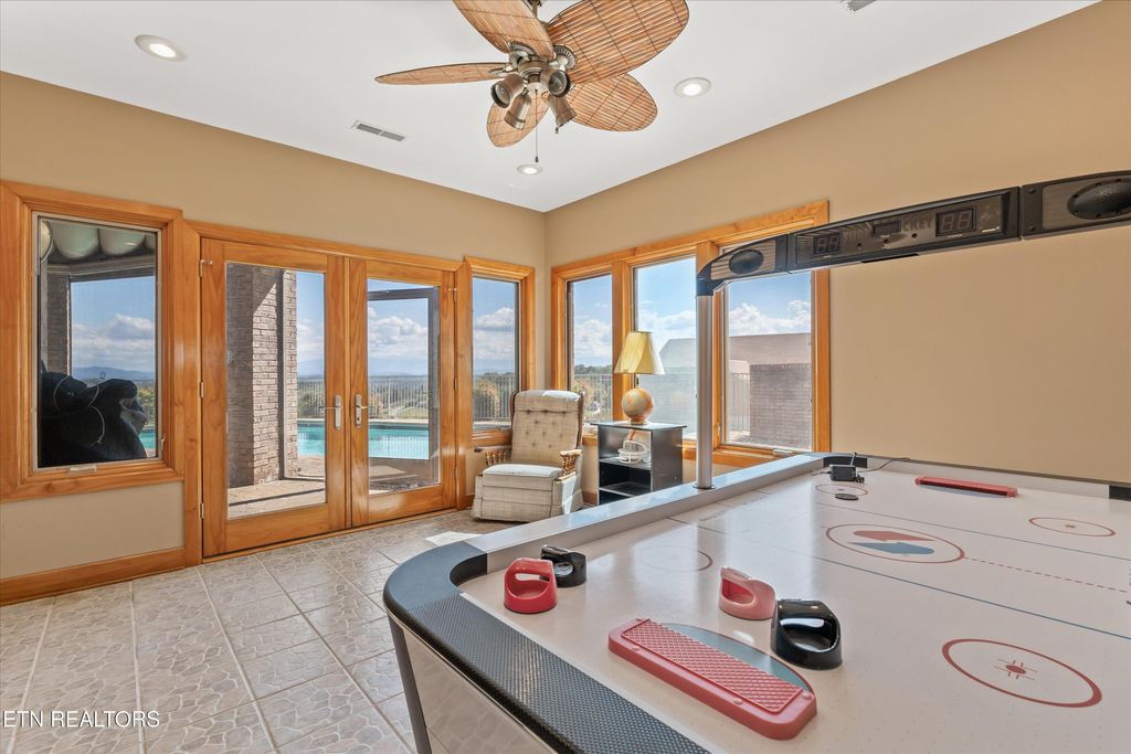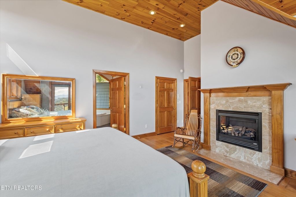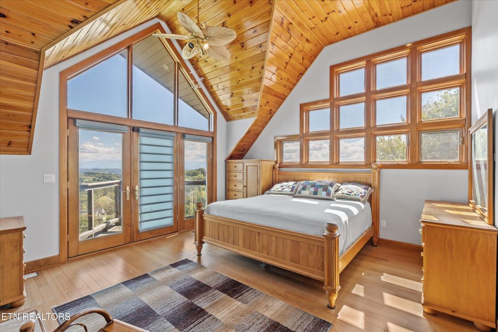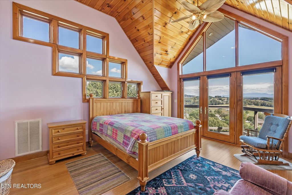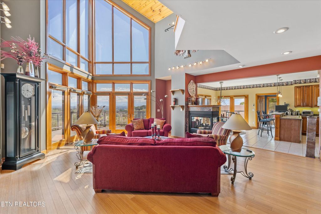 Beautiful one of a kind custom built home in the heart of the Smoky Mountains with incredible views from every window. Located in the Prestigious Bentwood subdivision. Breathtaking mountain sunrise views await you every day from your private bedroom balcony. This home features cathedral tongue in groove knotty pine hardwood ceilings, solid wood doors, Pella windows and exterior doors with upgraded hardware, Bamboo floors, all ceramic tile floors throughout the home are heated, 4 bonus rooms perfect for weight room-game room- or even a nursery. Elevator, kitchenette in basement, in-ground custom swimming pool, screened in pool patio, outdoor spiral staircase, instant hot water throughout the house at all times, full hook up and parking for your motor home, 3 gas fireplaces, central vacuum system, 3 car garage and lots of parking for guests, and gated driveway entrance.