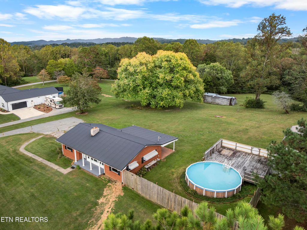 Check out this brick basement rancher sitting on nearly 3 acres of level land! This 3-bedroom, 1.5-bath home features original hardwood flooring and a spacious living room with a wood-burning fireplace, where the large windows frame beautiful views of the Cumberland Mountains. A formal dining area adds to the charm, while a full unfinished basement provides plenty of room for future expansion. The exterior is designed for low maintenance with its durable brick construction and metal roof. Step out back to enjoy the covered porch overlooking the pool - perfect for relaxing or entertaining. This home is ready for your vision - add your updates and style to make it uniquely yours. Located just minutes from ATV trails and Norris Lake, this property offers both convenience and potential. Call today for your private tour!