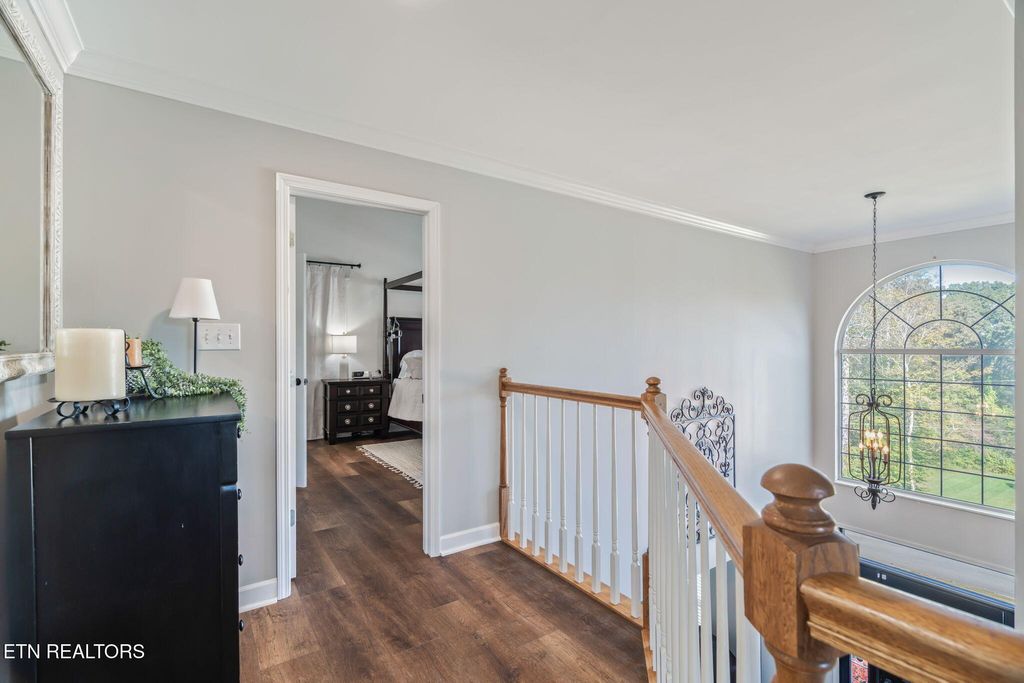 Upstairs, an airy landing with open overlook leads to a spacious primary suite featuring a fully renovated spa-like bath with an exquisite tile shower, double vanity, private water closet, linen storage, and a generous walk-in closet. Two additional bedrooms share a full bath, and a large bonus room with walk-in storage on each side adds flexible space for work or play.