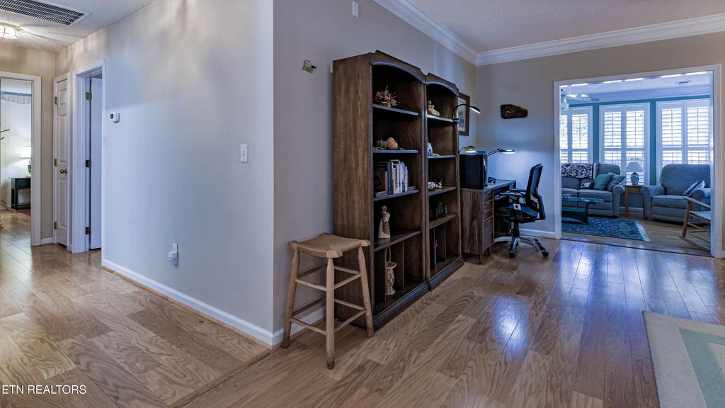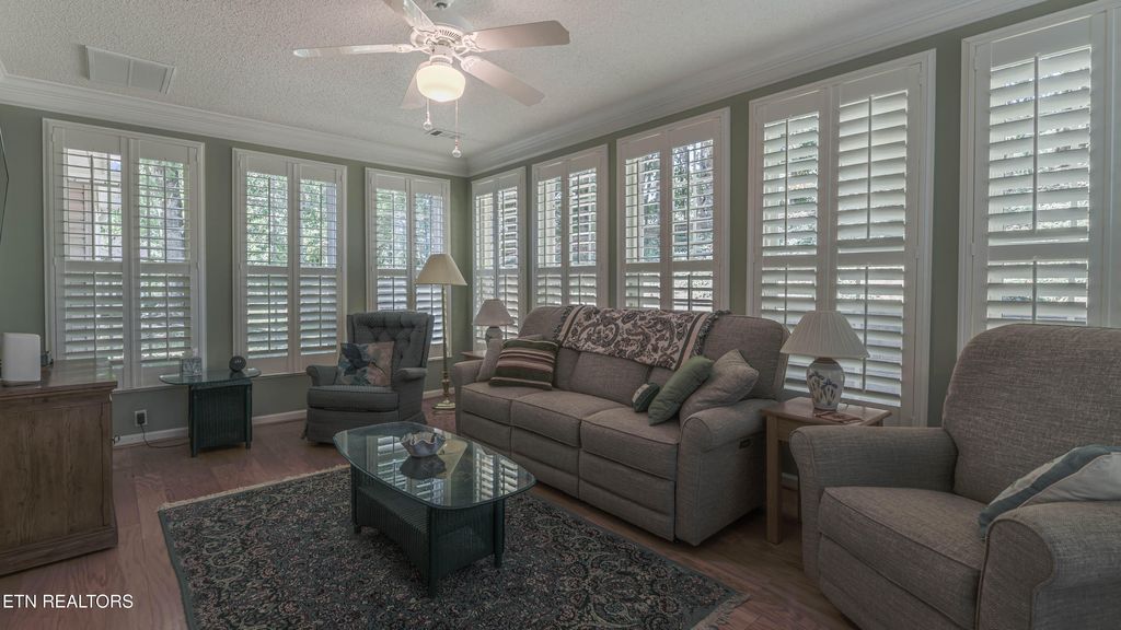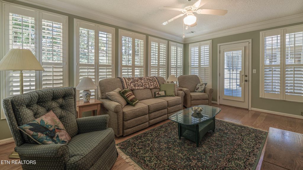 Meticulously cared for two bedroom, two bath home, located in the heart of West Knoxville, within the popular Millington Park condominium community. Home has had many home improvement updates: Master bath walk-in shower remodel completed 2025; Plantation shutters throughout entire home; Hardwood flooring throughout; HVAC replaced about four years ago; Quartz countertop in kitchen; Refrigerator, dishwasher, range/oven replaced within the past three years.. Kitchen refrigerator, washer and dryer will remain. Outdoor patio is complete with gas hookup. Beautifully landscaped community. Enjoy spending time in the enclosed sunroom all year long. A great place for family and friends to gather and spend time together. One-level living at its best!