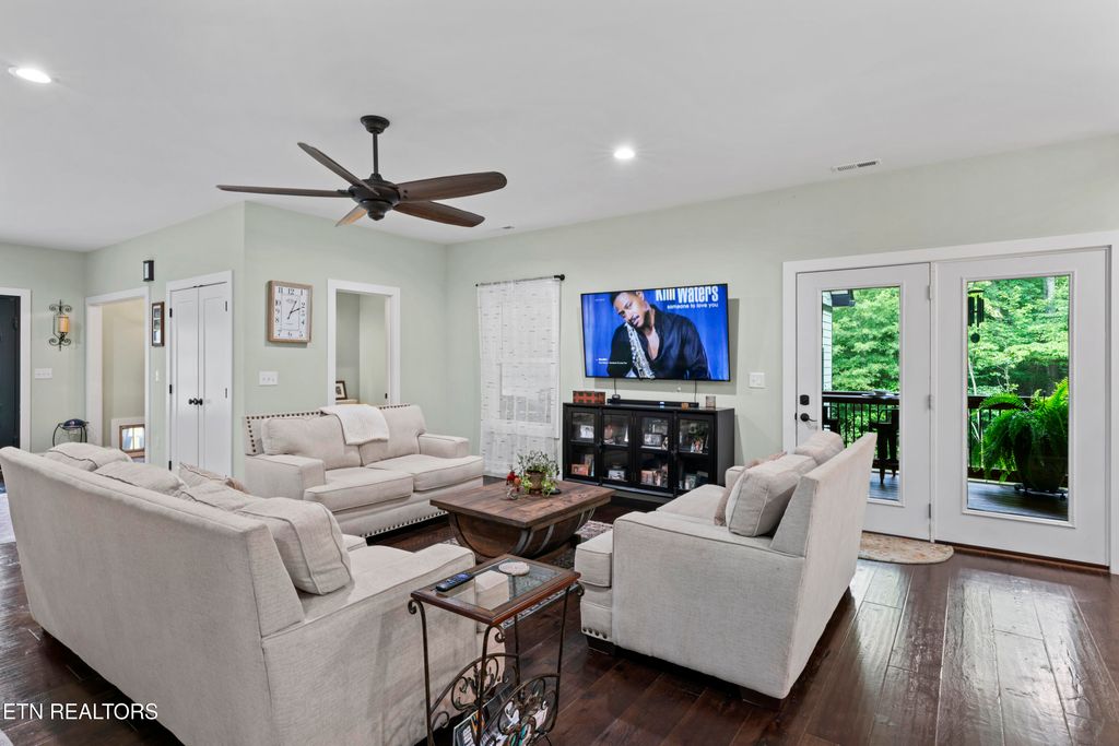 Welcome Home! Is exactly how you will feel when you open the large, west facing doors of this beautiful 2023 built home. Thoughtfully designed to be peaceful, balanced and comfortable. Combing the exterior's natural beauty in perfect harmony with the interior. The open floor plan is perfect for entertaining and flows nicely throughout. Follow your curiosity through the glass doors and find yourself on a huge breeze way covered porch or stroll out to your deck for some sunshine and watch the deer dance across your backyard. Back inside, as you meander across dark Hickory floors step into your large kitchen with plenty of counter space, cabinets and island, to cook up a storm, and/or visit with your guest as you prep for a gathering. The bedrooms all have ample space, plenty of room for family or guest. And wait until you see the walk-in closet in the master! On the lower level, it's time to play! In the movie area, a huge screen is installed to gather and watch your favorite game or a movie. There is also a separate workout room, an office, a full bath, storage room, bedroom and one other room to use as you choose. Within the space the current owner has a pool table and side furniture and games. There is even plumbing in the bonus rooms if you wanted to create a kitchenette. No worries about getting everything in the lower level, as you have double doors to the lower patio, that lead to the back yard and down to the river side cove (you are allowed to have a floating dock) and fire pit area. While down there, jump into your kayak and head out to one of your 2 moorings where you may have a larger boat? Or just anchor down and/or float on the river. Emory River, approximately 46 miles of waterway, is adjacent to the Watts Bar Channel, which is an intercoastal water way. Come see for yourself all this home has to offer before it's too late!