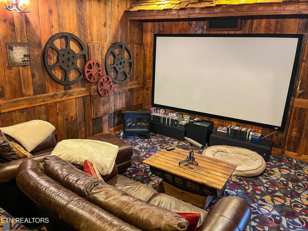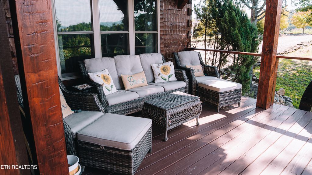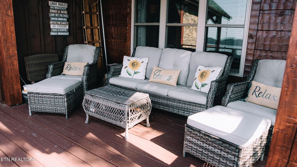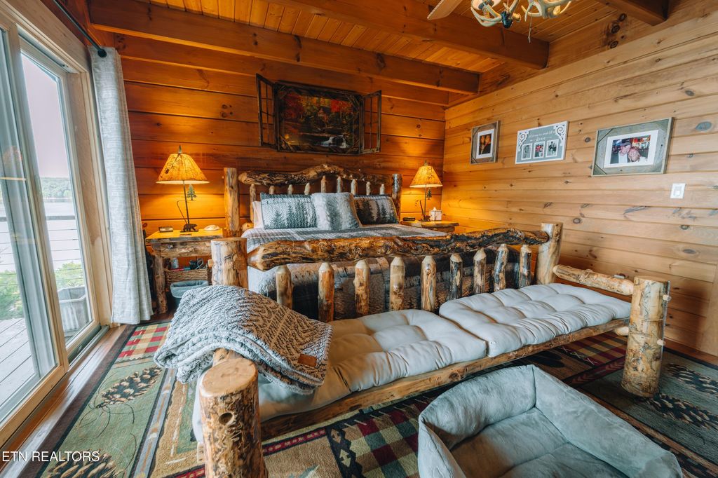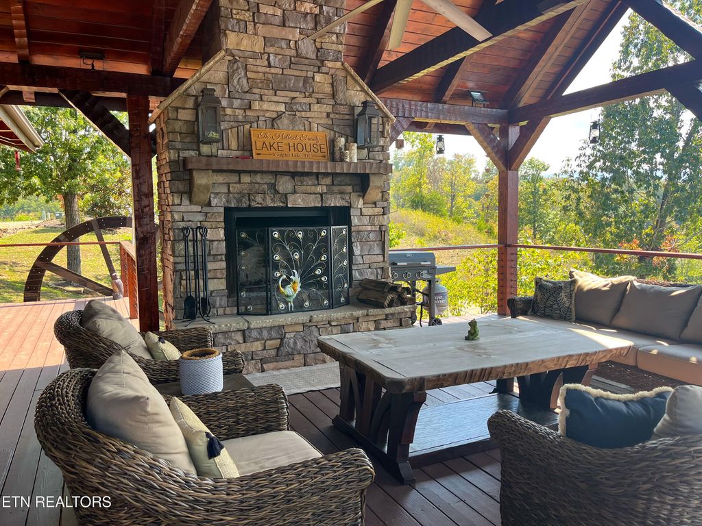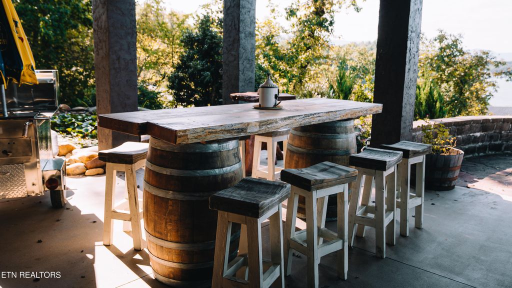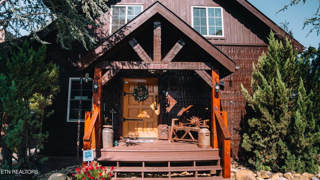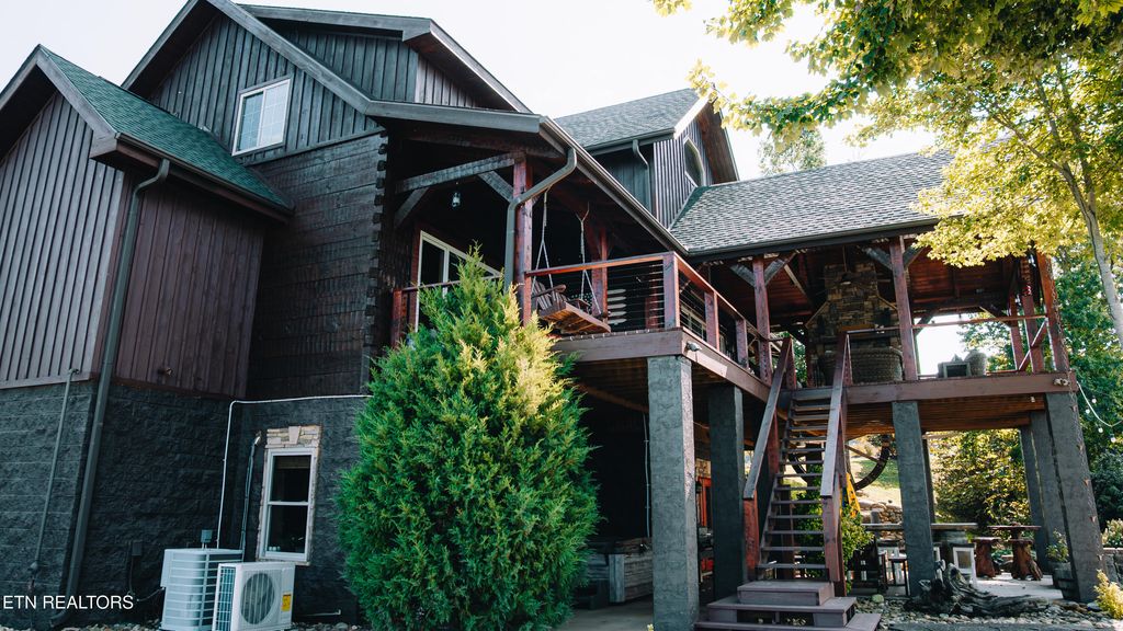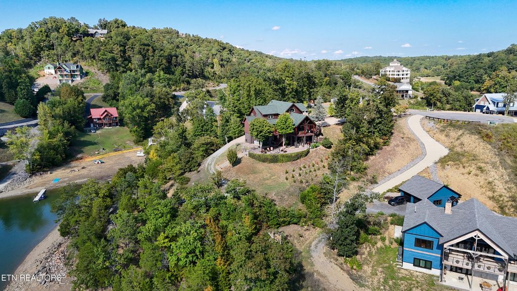 Luxury Timber Frame Log Cabin with Unbelievable Entertainment Basement! Nestled on the serene shores of Douglas Lake in Dandridge, Tennessee, this exquisite 3-bedroom, 5-bathroom timber frame log cabin offers unparalleled luxury and breathtaking views of the Great Smoky Mountains. Designed for those who crave sophistication, tranquility, and world-class entertaining, this dockable waterfront retreat is a masterpiece of craftsmanship and modern amenities. Step inside to a warm, open-concept interior with soaring ceilings, hand-hewn timbers, and expansive windows showcasing stunning main channel lake views. The gourmet kitchen, equipped with high-end appliances and custom cabinetry, flows seamlessly into the spacious living area, perfect for cozy evenings by the stone fireplace. Each of the three generously sized bedrooms features en-suite bathrooms, ensuring privacy and comfort for family or guests. The lower level is an entertainer's paradise, boasting an unbelievable custom basement designed for unforgettable gatherings. At its heart is a massive, professionally crafted bar area, complete with ample seating, sleek countertops, and space for hosting lively parties and events. This extraordinary basement also includes a state-of-the-art movie theater, perfect for immersive movie nights or game-day watch parties, making it the ultimate hub for entertaining guests in style. Step outside to the expansive back porch and lower deck, where you can unwind while soaking in panoramic lake and mountain vistas. A charming waterwheel and serene pond enhance the meticulously landscaped grounds, offering beauty and privacy from neighbors. Additional features include an EV charger in the driveway for eco-conscious convenience, and an expansive boat dock for direct access to Douglas Lake for boating, fishing, or enjoying the water. This upscale retreat blends rustic charm with modern luxury, making it the perfect primary residence, vacation home, or investment property. The owners have made numerous improvements to this incredible home! Don't miss your chance to own this one-of-a-kind lakefront gem in the heart of Tennessee's natural beauty. Schedule your private tour today!