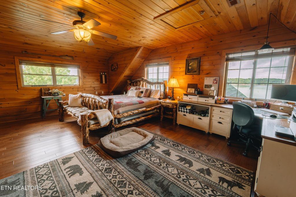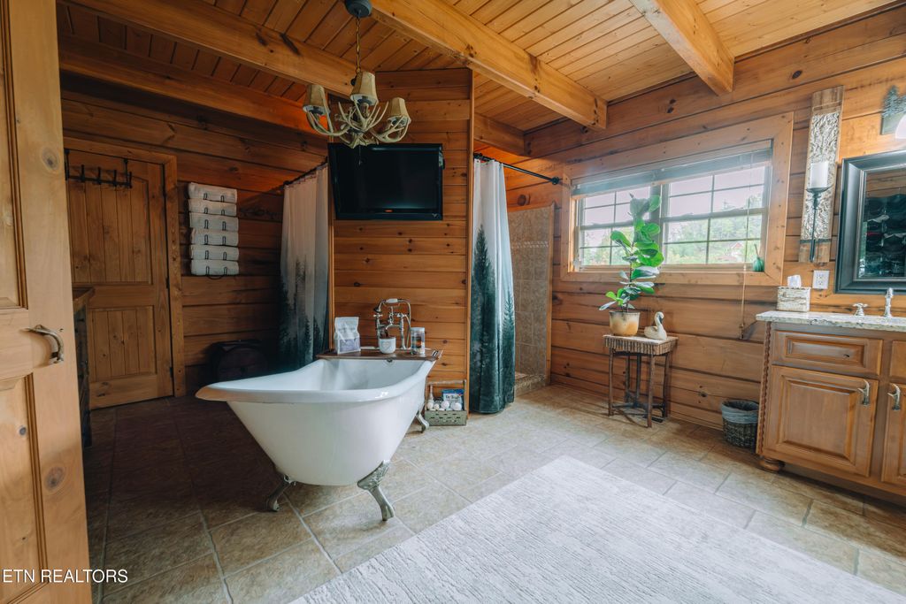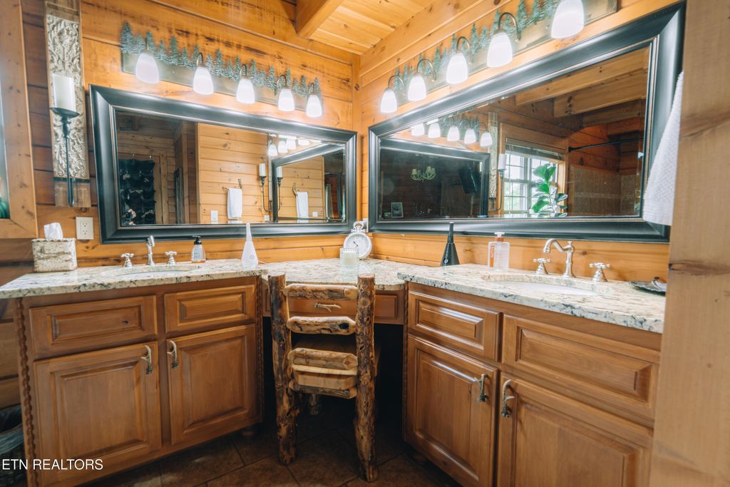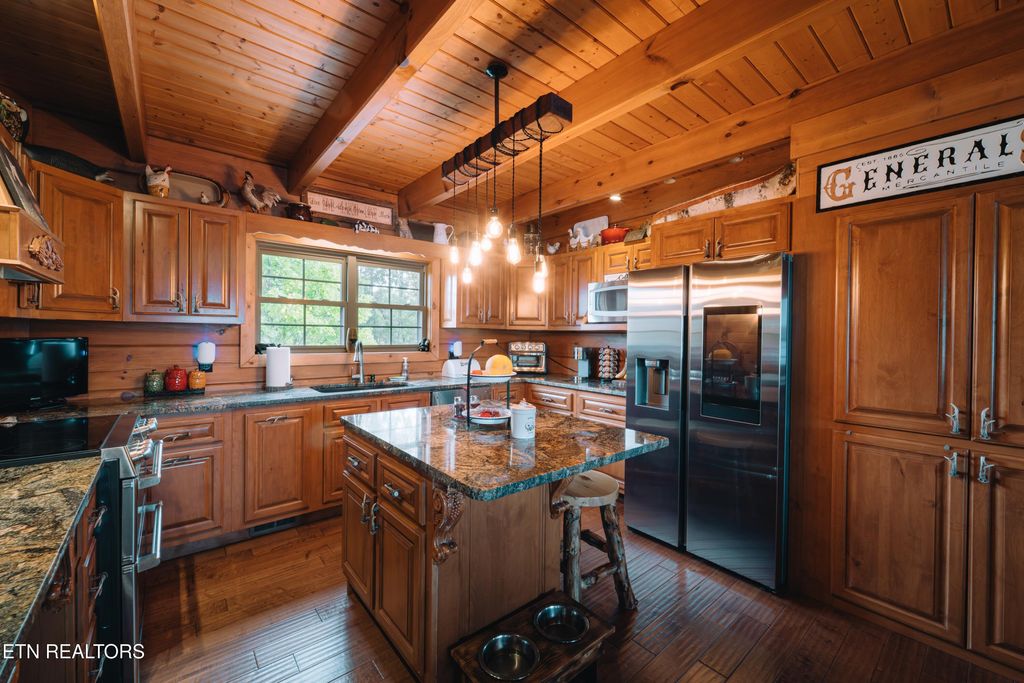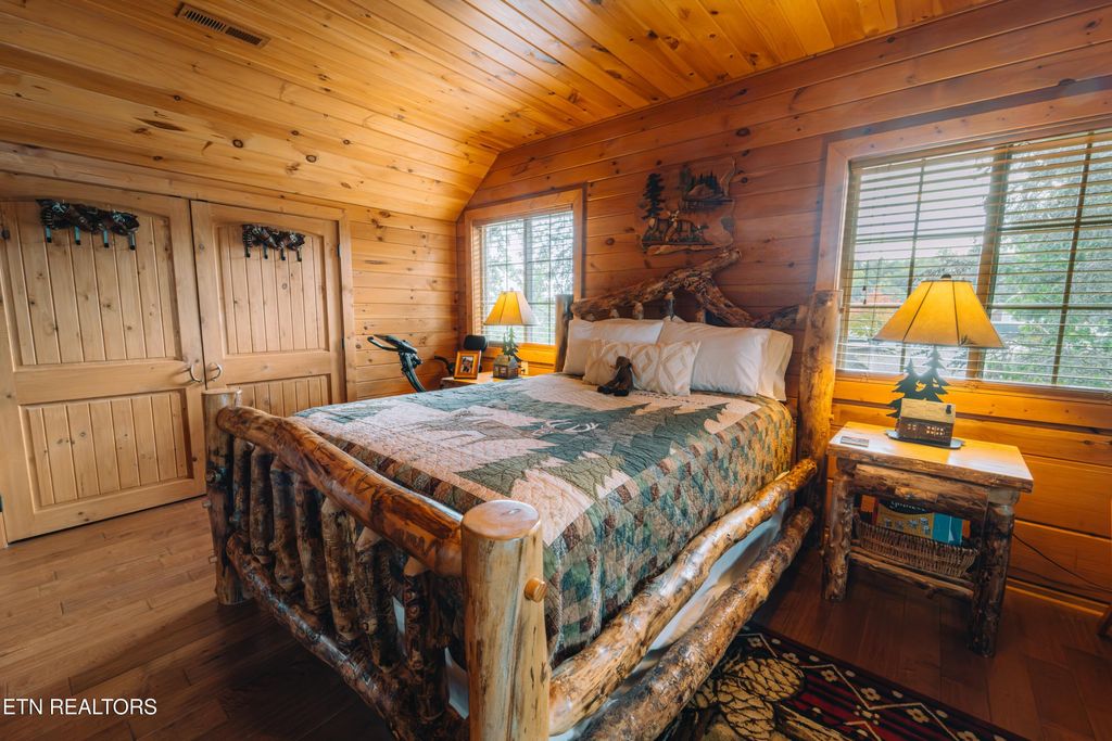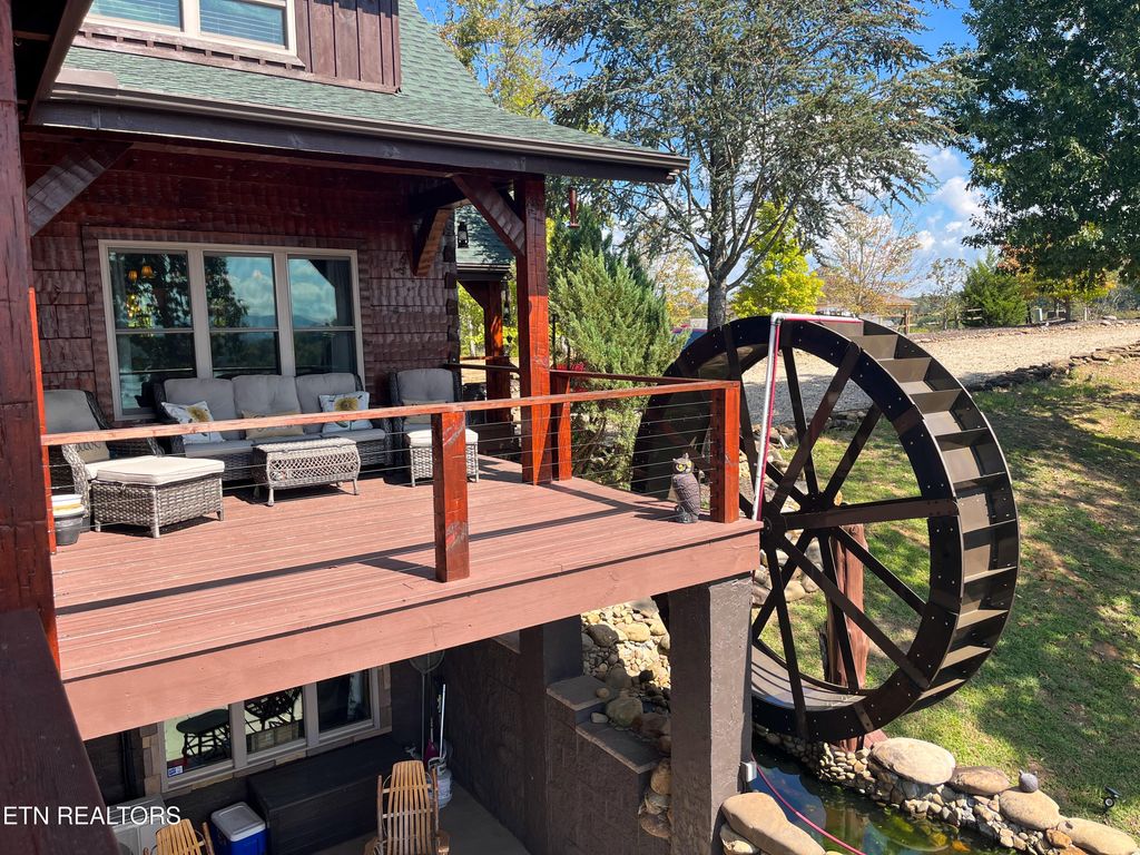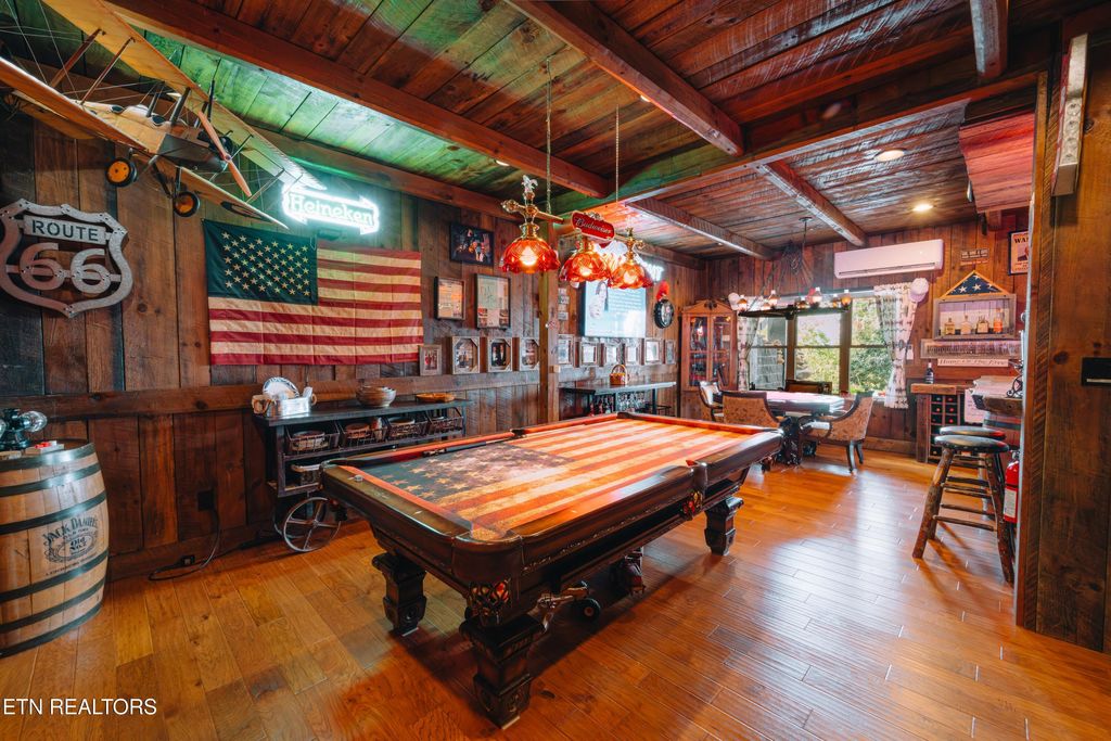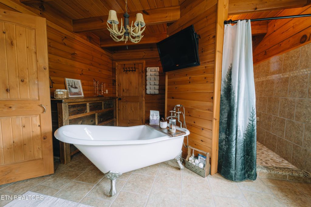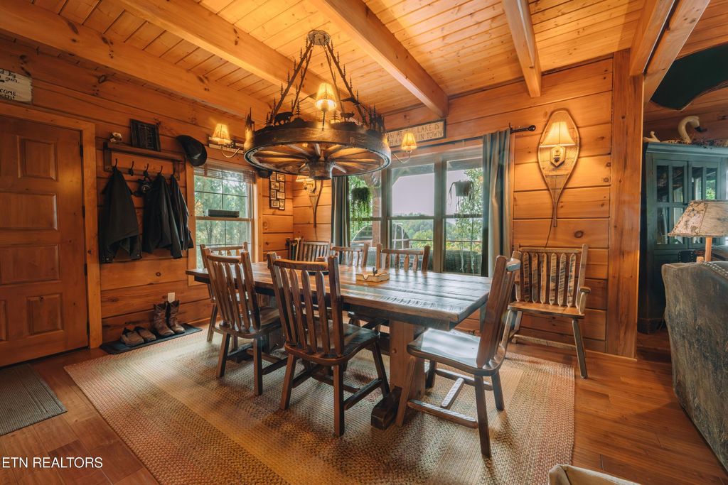 Luxury Timber Frame Log Cabin with Unbelievable Entertainment Basement! Nestled on the serene shores of Douglas Lake in Dandridge, Tennessee, this exquisite 3-bedroom, 5-bathroom timber frame log cabin offers unparalleled luxury and breathtaking views of the Great Smoky Mountains. Designed for those who crave sophistication, tranquility, and world-class entertaining, this dockable waterfront retreat is a masterpiece of craftsmanship and modern amenities. Step inside to a warm, open-concept interior with soaring ceilings, hand-hewn timbers, and expansive windows showcasing stunning main channel lake views. The gourmet kitchen, equipped with high-end appliances and custom cabinetry, flows seamlessly into the spacious living area, perfect for cozy evenings by the stone fireplace. Each of the three generously sized bedrooms features en-suite bathrooms, ensuring privacy and comfort for family or guests. The lower level is an entertainer's paradise, boasting an unbelievable custom basement designed for unforgettable gatherings. At its heart is a massive, professionally crafted bar area, complete with ample seating, sleek countertops, and space for hosting lively parties and events. This extraordinary basement also includes a state-of-the-art movie theater, perfect for immersive movie nights or game-day watch parties, making it the ultimate hub for entertaining guests in style. Step outside to the expansive back porch and lower deck, where you can unwind while soaking in panoramic lake and mountain vistas. A charming waterwheel and serene pond enhance the meticulously landscaped grounds, offering beauty and privacy from neighbors. Additional features include an EV charger in the driveway for eco-conscious convenience, and an expansive boat dock for direct access to Douglas Lake for boating, fishing, or enjoying the water. This upscale retreat blends rustic charm with modern luxury, making it the perfect primary residence, vacation home, or investment property. The owners have made numerous improvements to this incredible home! Don't miss your chance to own this one-of-a-kind lakefront gem in the heart of Tennessee's natural beauty. Schedule your private tour today!