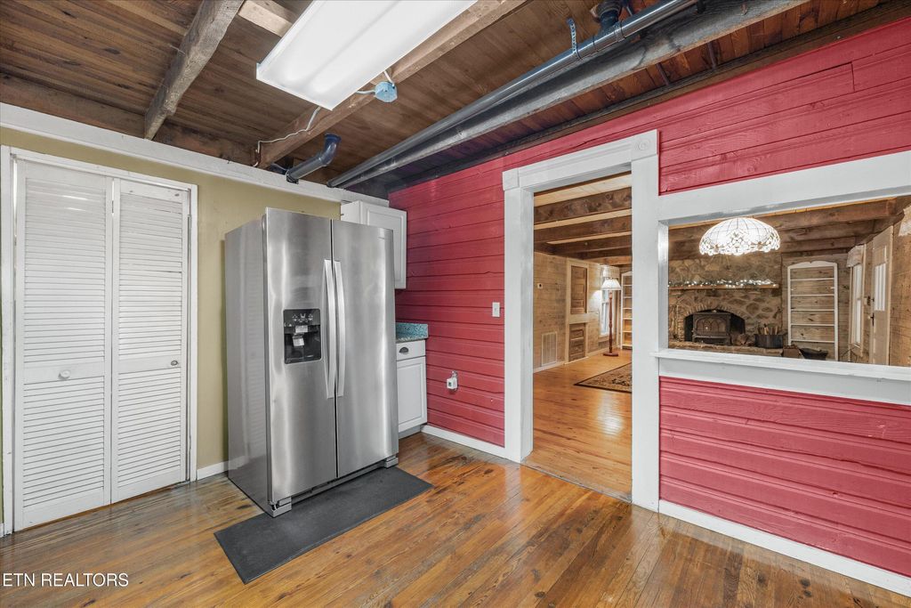 The home features a cozy living room with fireplace, a functional kitchen with newer cabinetry and countertops, and a primary suite with its own full bath. Timeless details, including original flooring, antique light fixtures, and warm wood accents, give this home a sense of authenticity that's hard to find.