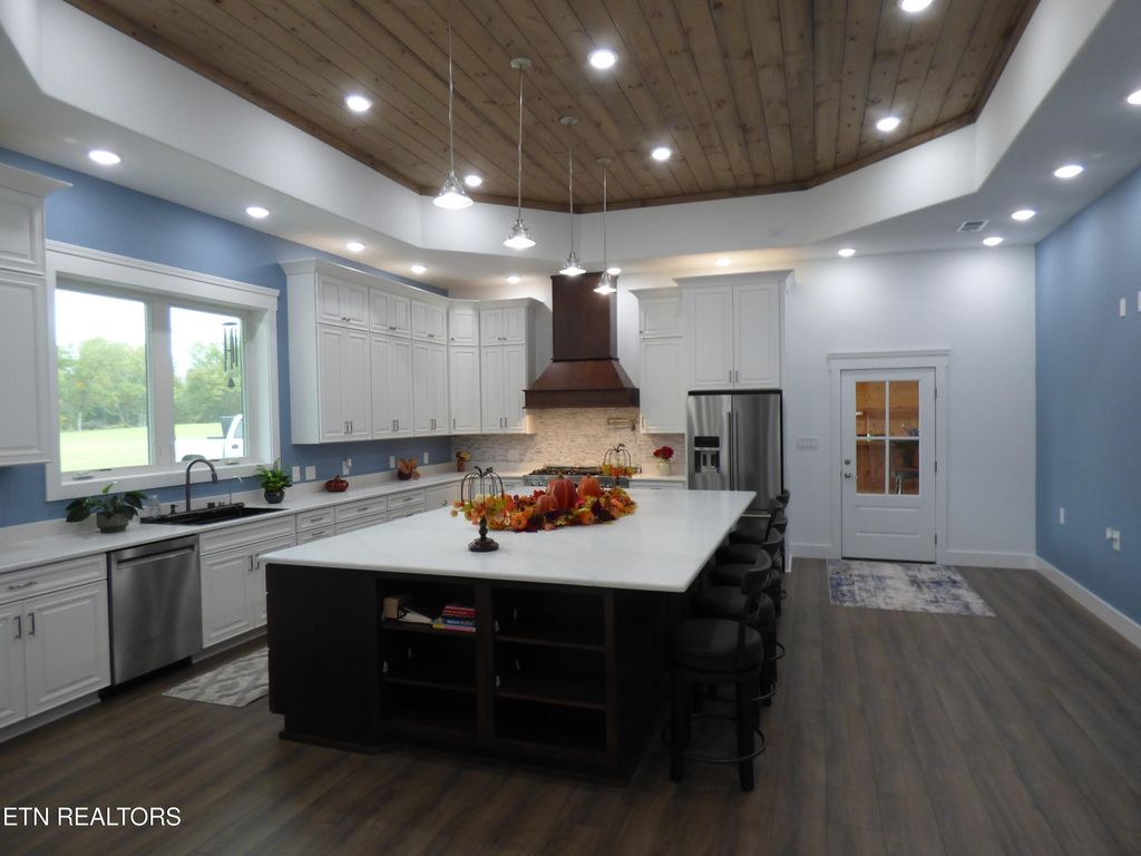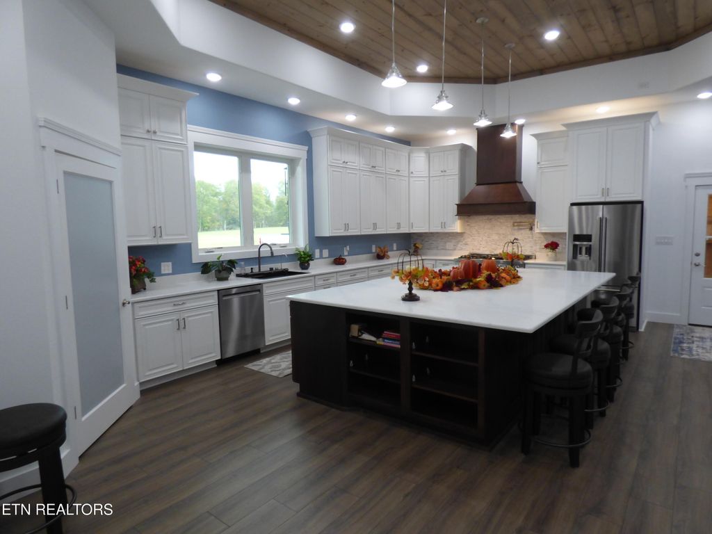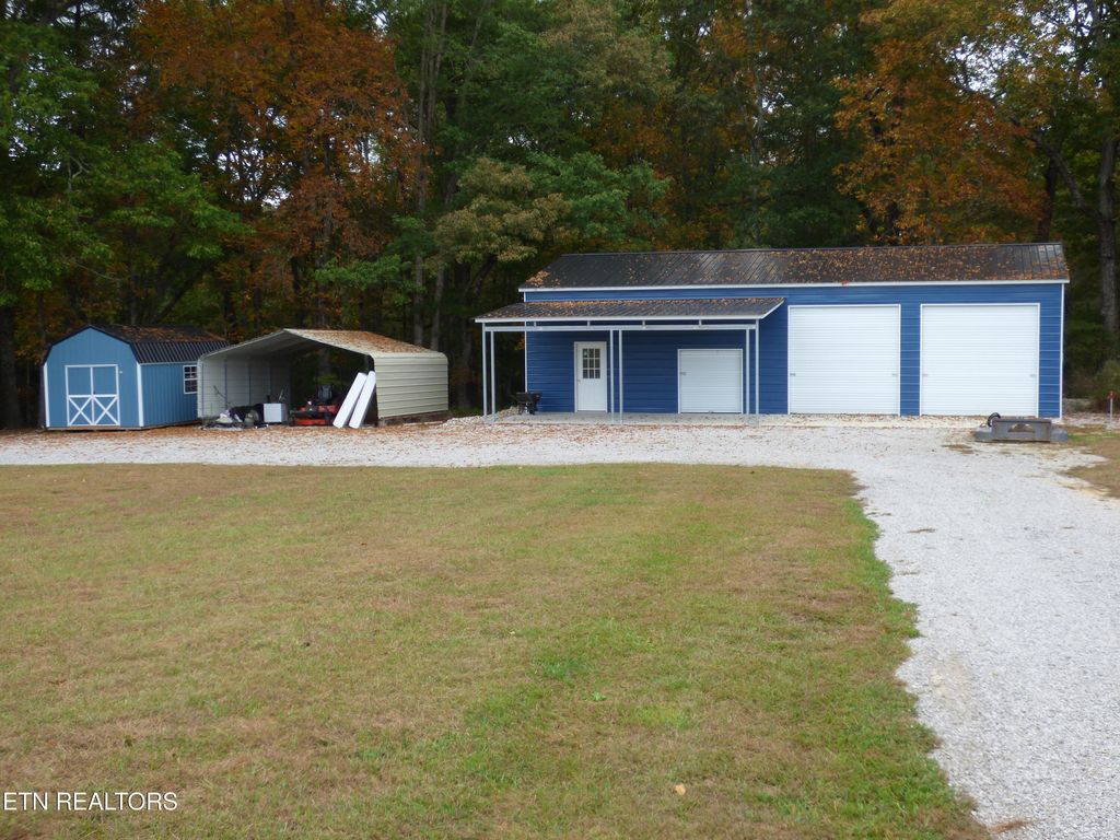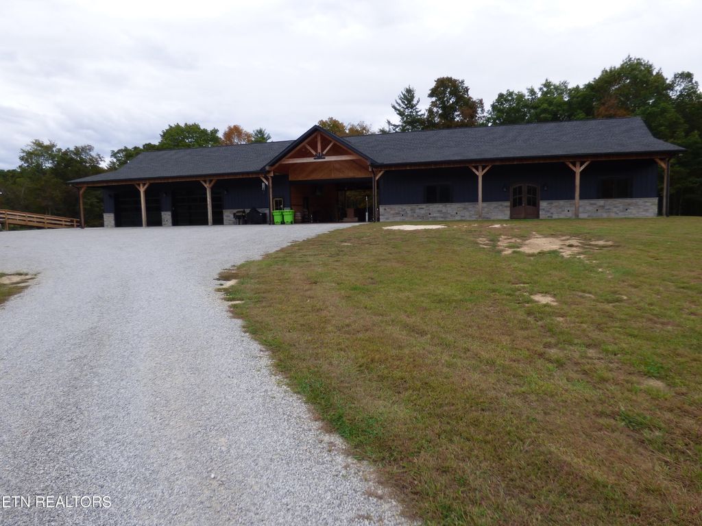 Beautiful One of A Kind Custom Built Home with Attached Breezeway and Extra Large Garage on 10.42 Acres in the Homestead Area. The home is 40' x 60', the Breezeway is 24' x 40' and the finished garage is 40' x 60'. The beauty of the home starts when you walk thru the arched front door into a large living room looking at a stone fireplace with gas logs. Then left into the unique and open kitchen and dining area with a large island with granite countertop, lots of storage underneath, stainless appliances, commercial gas range, large pantry and a sink that runs off electric (must see). Cathedral and trey ceilings thru out the home. Tiled walk in showers in both baths and a monster sized walk in closet in the master bathroom. Then we go out to a 24 x 40 breezeway with large custom built bar and large auto doors with windows and screens at each end that can be closed up to add a little heat and use it year round. Next step into the 40 x 60 finished garage with heat and air, 3 large window garage doors, a full kitchen, half bath, and epoxy flooring. All outside walkways and covered porches are stamped and stained. This property also has a large detached workshop/garage, shed, and a 1 bedroom, 1 bath manufactured home for additional living quarters. Also the right side of the property borders the Cumberland Mountain State Park. This property is a must see!!