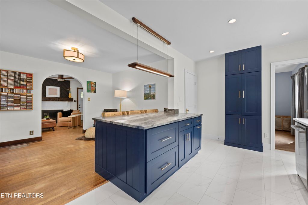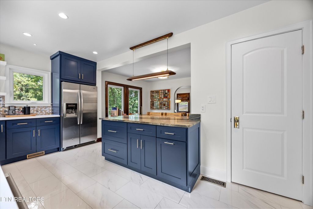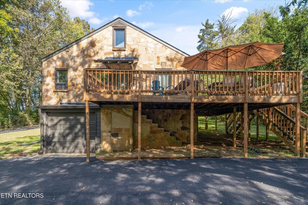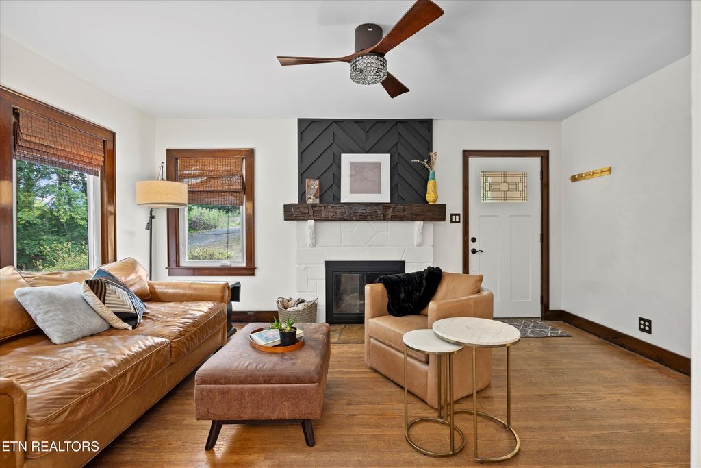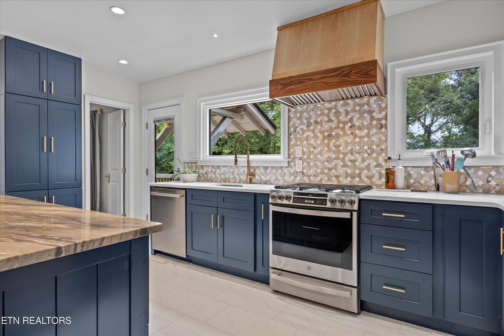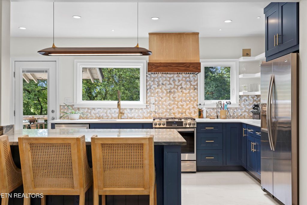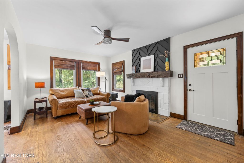 This charming stone cottage has been thoughtfully renovated to blend historic character with modern comfort. Featuring 2 bedrooms, 2 bathrooms, and an unfinished basement, the home offers a warm and inviting layout with stylish updates throughout. The living room is filled with natural light and centers around a cozy gas fireplace with a custom Amish barn beam mantle and chevron accent facade. The kitchen, fully remodeled in 2025, includes Horizon Blue cabinetry, quartz and quartzite countertops, Bosch dishwasher, GE Profile gas range, custom wood hood, and marble mosaic backsplash. Both bathrooms have been beautifully updated: the main level bath with Italian marble finishes and glass shower, and the upstairs bath with a freestanding soaking tub, gold fixtures, and vaulted ceiling charm. Upstairs you will also find a versatile loft-style bonus area with maple flooring, cable railing, and a dedicated mini-split system that works well as a studio, office, or playroom. Recent improvements bring peace of mind, including a new roof (2021), windows (2023), 200-amp electrical service with full rewire, PEX plumbing, YORK HVAC system (2022), and dual water heaters. The unfinished basement adds laundry, storage, and future potential. The property also offers access to the Holston River, perfect for paddle boarding, kayaking, and enjoying the outdoors. Outside, the driveway has just been repaved and the lot features fresh landscaping, an updated covered patio, and plenty of space to enjoy. With easy access to East Knoxville, downtown, and I-40, this home combines character, recreation, and convenience.