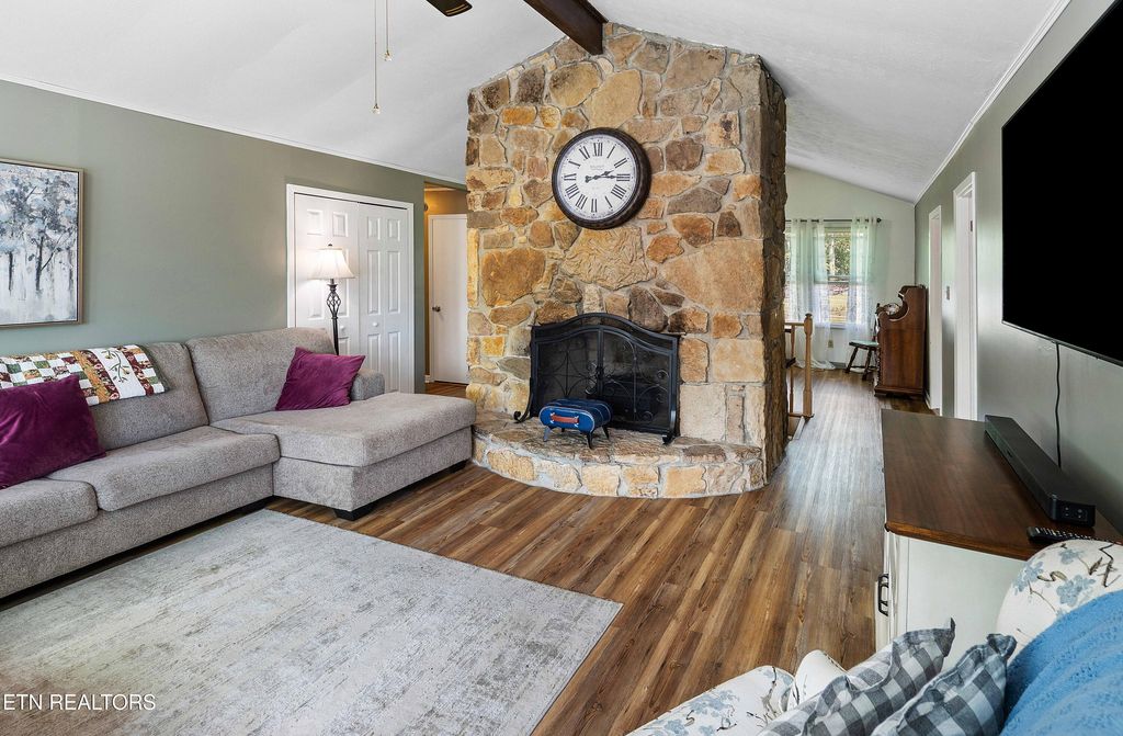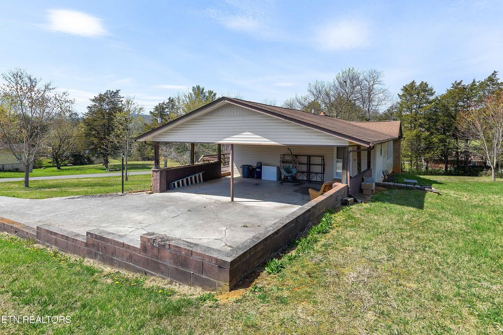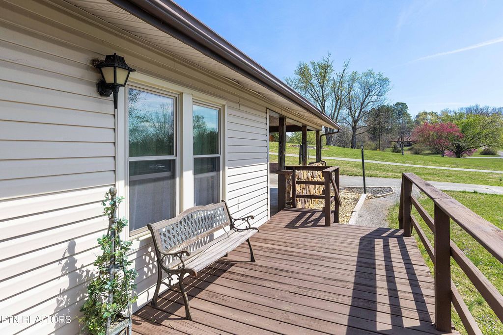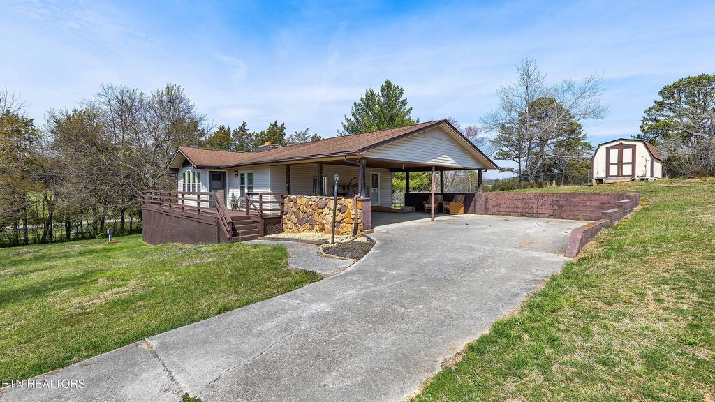 Corryton - Set on nearly ¾ of an acre, this 3-bedroom, 2-bathroom home offers 2,120 sq. ft. of space, natural light, and functional upgrades - ideal for those who value comfort and everyday versatility. Highlights include updated kitchen in 2023 with granite counter, tile flooring, and appliances. Vaulted ceiling in the living area with exposed beam and expansive windows. Stone wood burning fireplace and newer LVP flooring throughout the main level of the house. Spacious wrap around deck for entertaining or relaxing. The partial walk-out basement has a wood burning stove and offers additional finished space and is perfect for a game room or home theater. Extra lot is included in the sale price giving room to grow, a garden, or just enjoying additional privacy. Storage building is also included in the sale price. Outdoor recreation, local restaurants, and Knoxville's shopping areas are within an easy drive with easy access to Tazewell Pike. Home offers a one year 2-10 Home Warranty. Buyer to verify all information.