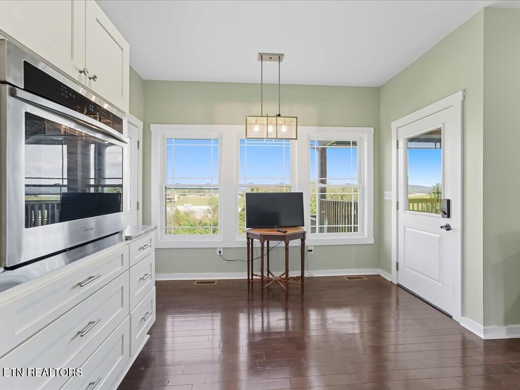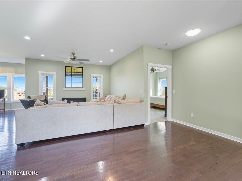Step inside to an open-concept design with a split-bedroom layout for privacy. The kitchen features white shaker cabinets, a large island, stainless steel appliances, a walk-in pantry, and a cozy breakfast nook. The living area is lined with a wall of windows, letting in tons of natural light and showcasing those beautiful Cherokee Lake and mountain views.