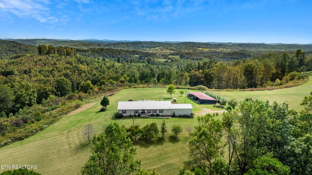 PEACEFUL, COUNTRY LIVING IN SHARPS CHAPEL, TENNESSEE!!! Discover This Beautifully maintained 4-bedroom, 2 Full Bathroom home nestled on over 10 acres of tranquil countryside. Located in the picturesque Sharps Chapel, the property offers breathtaking views, a spacious barn with concrete floor, mature fruit trees perfect for seasonal harvest, a charming chicken coop for your feathered friends, and seasonal views of Norris Lake to enjoy!