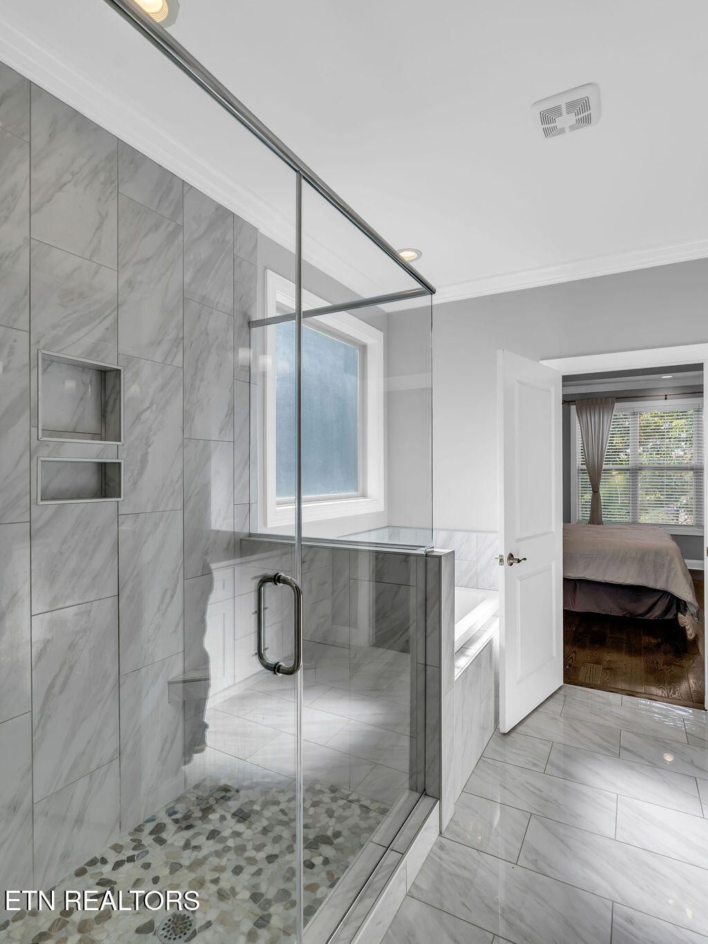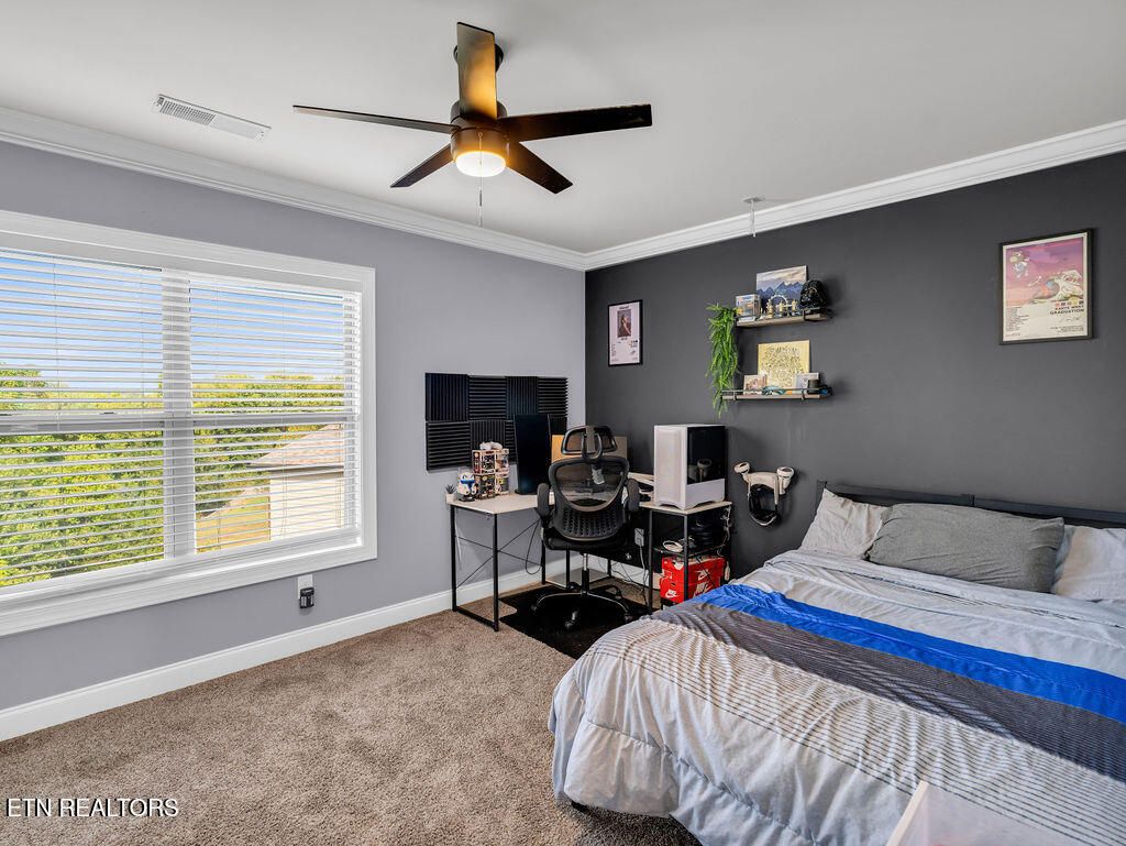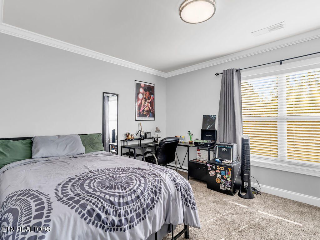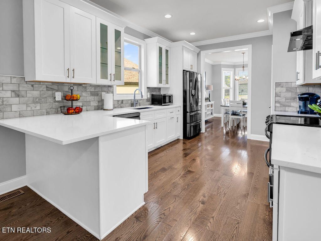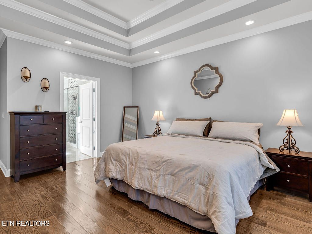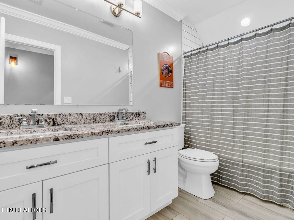 Welcome to a home located at the end of a quite cul-de-sac that checks all the boxes"”space, comfort, quality, and convenience. This well-kept 3-bedroom, 2.5-bath home offers over 2,500 square feet of thoughtfully designed living space nestled in a charming and quiet neighborhood. From the moment you step onto the inviting front porch, you'll feel right at home. A soaring two-story foyer sets the tone as you enter, leading to a bright great room with dramatic ceilings, beautiful 2-story stone fireplace flanked by built-ins, large windows, and rich hardwood floors that flow throughout the main level. The open layout connects to the dining room, which features a sunny bay window that's perfect for lingering conversations over dinner. The heart of the home is the stunning white kitchen showcasing polished quartz countertops, stainless steel appliances, and plenty of cabinet space. Enjoy your morning coffee in the cozy breakfast area while taking in the view of your private backyard. The main level features the spacious primary bedroom, complete with a double trey ceiling and a luxurious en-suite bath. The bathroom boasts a whirlpool tub, tiled walk-in shower, dual vanities, and an oversized walk-in closet roomy enough for even the pickiest wardrobe enthusiast. Upstairs, you'll find two generously sized bedrooms, each with walk-in closets, plus a large bonus room that can serve as a game room, office, or guest suite"”your call. The guest bath here features a double vanity with granite tops. The second-floor landing also includes a stylish overlook into the great room and foyer below. Additional thoughtful features include iron staircase spindles, a central vacuum system, and a covered back deck ideal for outdoor dining or just soaking in the peaceful setting. The backyard offers ample privacy with plenty of space to garden, entertain, or simply enjoy the quiet. The tall crawl space affords extra storage possibilities. The location offers excellent access to local amenities. Grocery trips are quick with a supermarket just around the corner. Nearby parks, schools, and even Norris Lake provide multiple options for weekend outings or daily convenience. Commuters will appreciate being close to major interstates while still enjoying the tranquility of this tucked-away community. Whether you're hosting guests or just relaxing after a long day, this property blends quality construction with practical design and a desirable location. Come see what makes this house more than just a place to live"”but a place to call home.