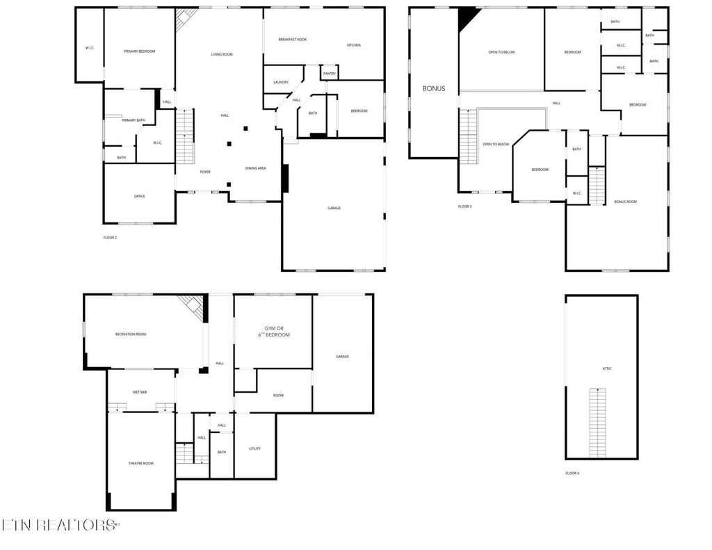 Upstairs, you'll find three bedrooms"”each with its own bathroom"”along with two versatile bonus rooms and a walk-up attic for additional storage or creative space. The finished basement expands your lifestyle options with a theater room, living area, an additional room ideal for a gym or guest suite, and a 4th garage bay, perfect for extended living or entertaining.
