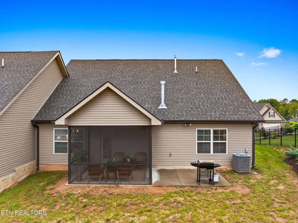 Off the main living area, a screened-in porch offers the perfect spot for morning coffee or evening relaxation. A large concrete pad at the rear of the home makes an ideal location for grilling or a hot tub. A well-kept yard and landscaping complete the outdoor oasis.