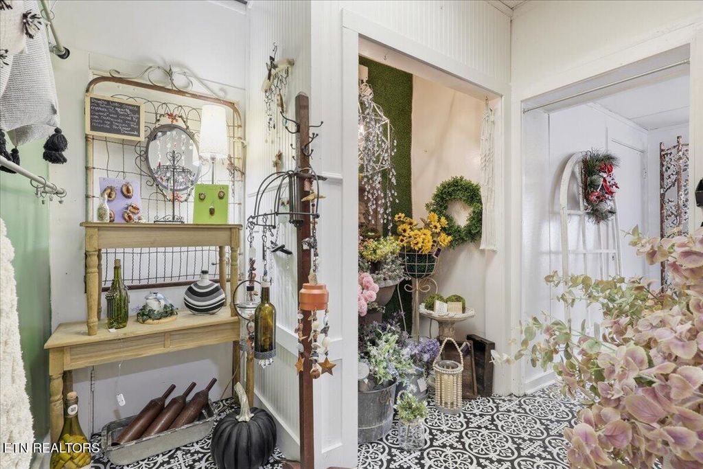 Main level currently being used as a home decor/gift shop but there are unlimited potential uses. Has 2 restrooms, detached storage building and the original smoke house, kitchen with grease trap in place for a food service location.
