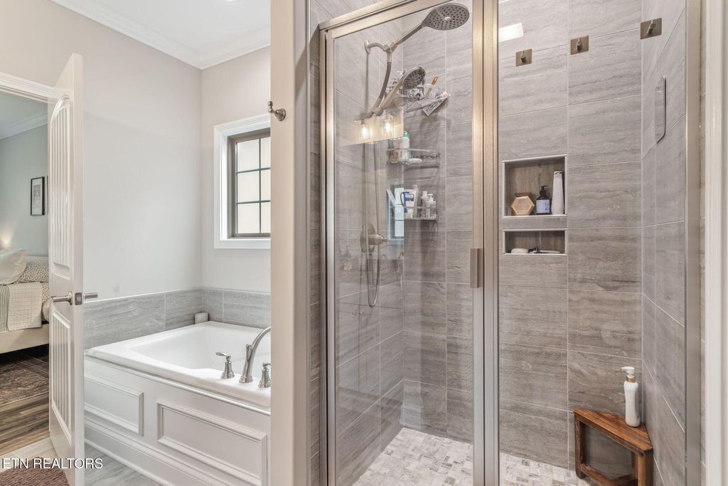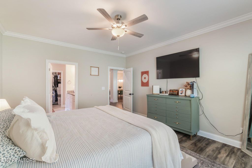 This Custom Luxury 4Br 4Ba w/Bonus Room home is located off Pellissippi Parkway & convenient to West Knoxville and to Oak Ridge! Room for everyone with this floor plan. The quality craftsmanship this home offers the perfect blend of luxury, comfort, convenience & storage. The main level features a master suite & 2nd bedroom with full bath access. The open living & dining area feature: wainscoting, crown molding, luxury vinyl flooring, Pella windows, vaulted ceilings and natural gas fireplace with tile accents. Kitchen features granite countertops, soft close cabinets, tile backsplash, stainless steel appliances & bar top counter. The master suite on main features: walk in closet w/high-end shelving, full bath, double vanity, glassed in tile shower and relaxing soaking tub. The Mud/Laundry room with extra sitting area with storage that connects to the heated & cooled garage. The upstairs has 2Brs, 2Baths & bonus room. One of the bedrooms features a flex space that could be an office or playroom the other has walk-in access to attic storage through closet. Maintenance free! The HOA covers mowing, mulching, and grants access to all amenities including a pocket park, streetlights, and a walking trail backing up to Beaver Creek's 44-mile water trail. Professionally landscaped yard complete with sod and irrigation. Great location and just 2 miles away from new Hardin Valley Elem. Seller has upgraded: New front door, ceiling fans, fenced backyard, additional washer hookup added (currently used for combo washer/dryer that does not convey) both thermostats replaced with smart thermostats, 2 standalone HVAC units in garage & main level bedroom and custom closet shelving. Lots of closet space throughout the home. Wardrobe in Bonus can convey if want to use as 5th Bedroom. Additional 420 sqft added for heated and cooled garage. Sale subject to sellers finding suitable housing.