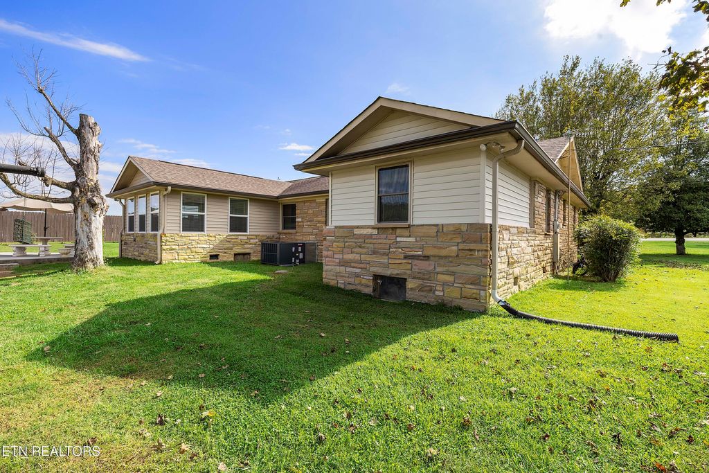 -Charming 3-bedroom, 2-bath rancher with a beautiful stone exterior and a welcoming covered front porch. This home has been updated"”featuring a brand-new kitchen, Updated pex plumbing, luxurious new master bath, and a bright new sunroom. Enjoy hardwood floors throughout with tile in wet areas. Cozy up by one of the two fireplaces indoors (one gas and one wood burning) or enjoy the outdoor entertaining area with large wood-burning fireplace. Property is on public water but also includes a fresh-water well, and a powered storage/work shed for hobbies or projects. A must see today!