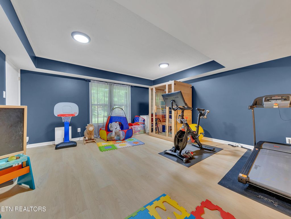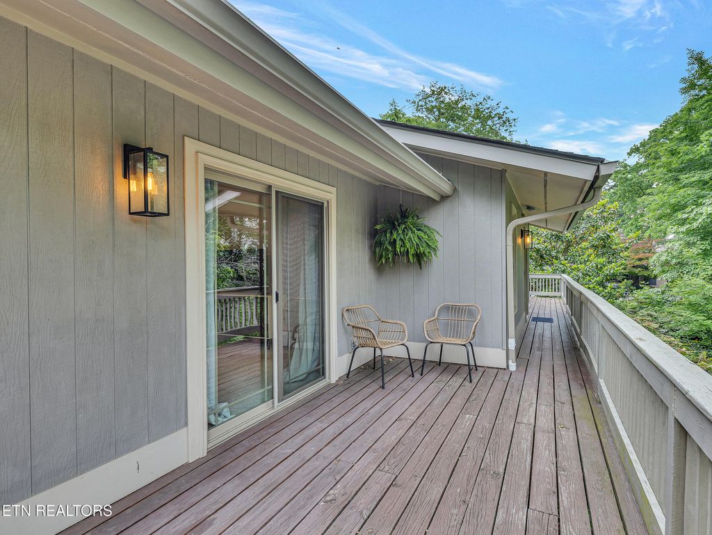 Welcome to Fox Den, one of Knoxville's most sought-after golf course communities located in the heart of Farragut! This beautiful basement ranch home features a practical floor plan with numerous updates and is one street away from Fox Den Country Club. As you step inside, you'll be greeted by a wealth of natural light that illuminates the spacious open-concept layout, radiating charm and vibrancy. The living room boasts hardwood floors and a stone fireplace, seamlessly flowing into the dining and kitchen areas. The sleek, modern kitchen has been thoughtfully renovated to include all-new flat-panel cabinetry with a functional design and layout, quartz countertops, an undermount single-basin workstation sink with a basin rack, new electric range (with a gas hookup), and a stylish backsplash. ALL NEW FEATURES INCLUDE: interior paint throughout, interior and exterior doors, recessed lighting, gorgeous guest bath, water heater (2023), newer roof (2020), gas insert for main level fireplace, water filtration system (2023), and recently installed CPI security system. The main level includes two generous guest bedrooms, a guest bath, and an oversized primary suite complete with a tile walk-in shower, a new double vanity, porch access, and a walk-in closet.