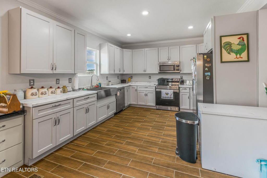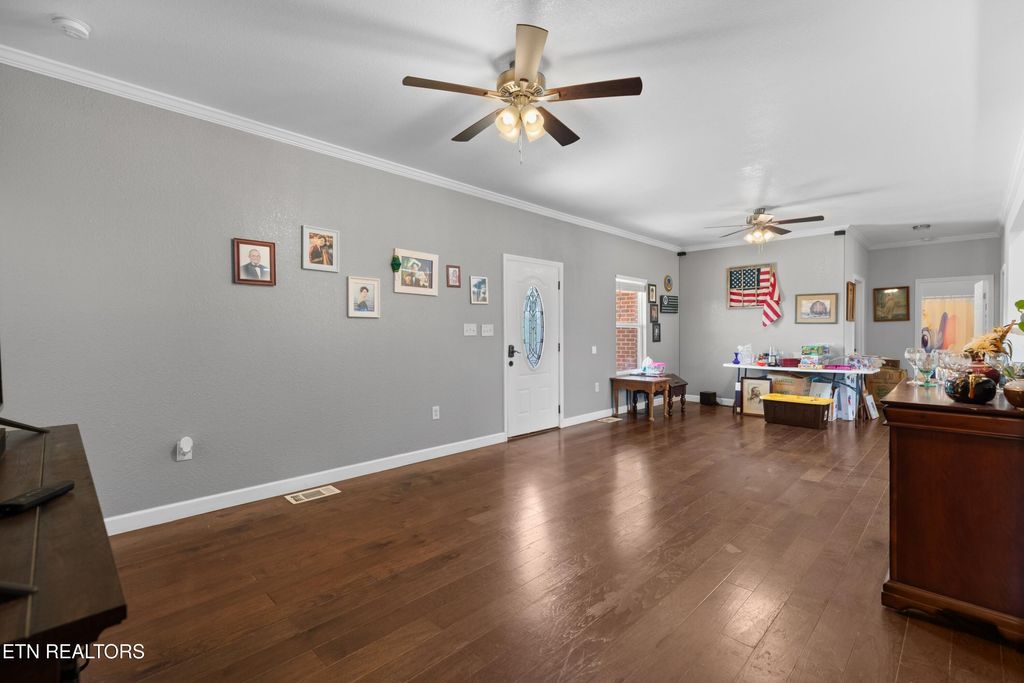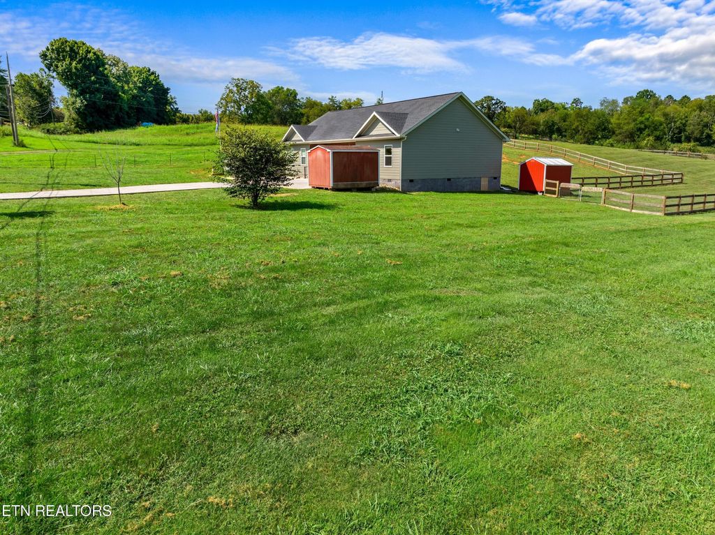 Home offers 3BR/2BA with a 4th room that could be a bedroom or office. Home offers split bedroom design with large master bedroom and master bath with ceramic tile shower. Beautiful kitchen with stainless steel appliances, lots of cabinet space. Open kitchen and dining area with ceramic flooring, large living room with wood floors. Other side of home 2BR and full bath. Double back doors open up to large back yard that is mostly fenced. Two storage buildings also go with this home. ( Gray Building Does Not Stay). Located close to Jefferson City, Morristown, Knoxville and the Great Smoky Mountains. A must see! Contingent upon Seller finding a home.