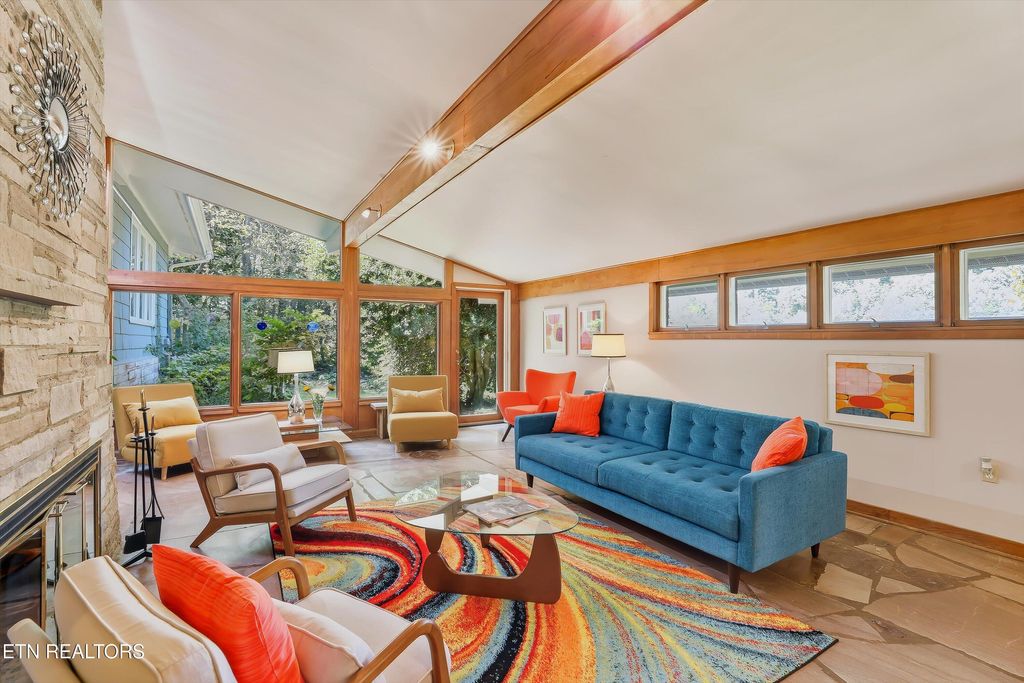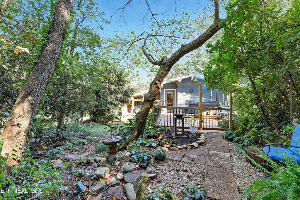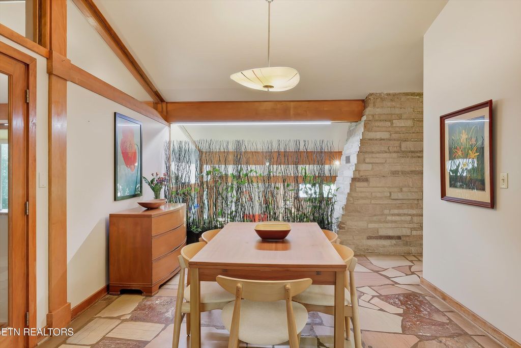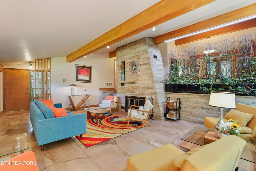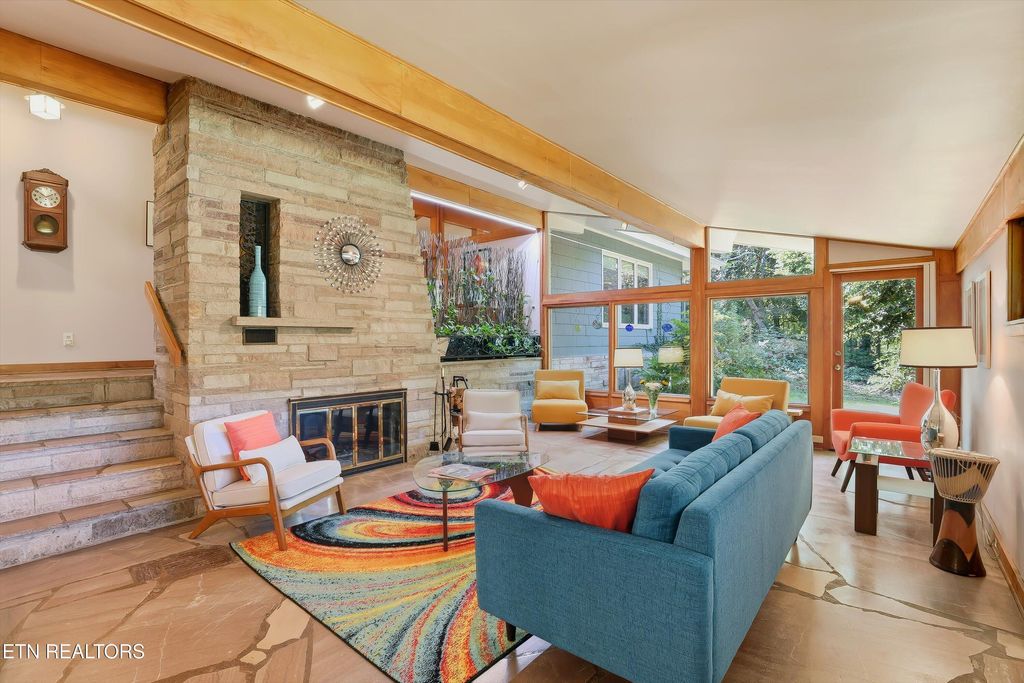 Fascinating 4/3 Mid-Century Modern home located in one of Knoxville's finest established neighborhoods! Candora marble flooring in LR/DR; original hardwood; and new carpet in Den. Beamed cathedral ceilings; updated baths; new flooring and paint down. Since purchasing in 2019, Sellers have replaced water heater (80 gal.); added new water filtration system/softener; replaced all cast iron pipes to/from street and in-house; replaced roof; and much more! Relax on the patio in hot tub while watching your very own miniature waterfall at the nearby pond. Add'l potting shed or extra storage. This home is truly a dream come true for someone!!! Call today!