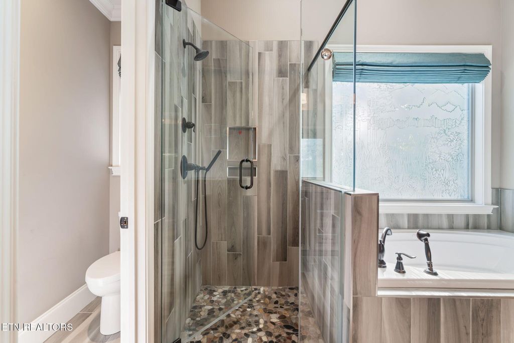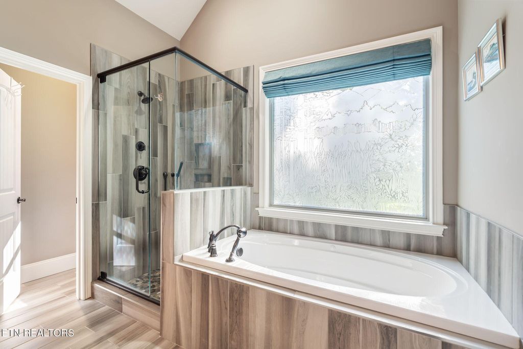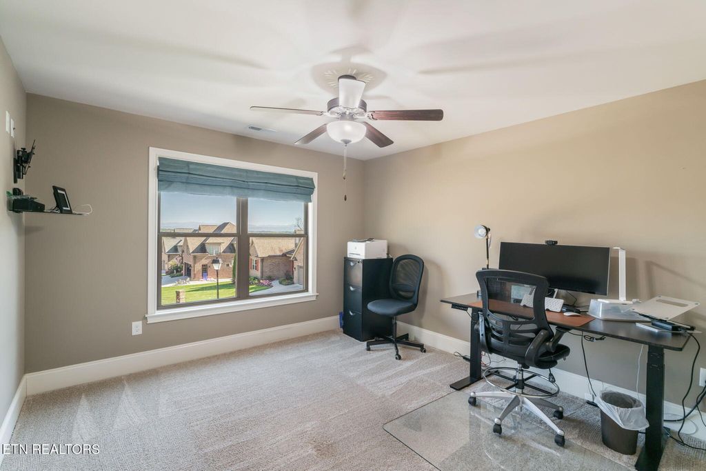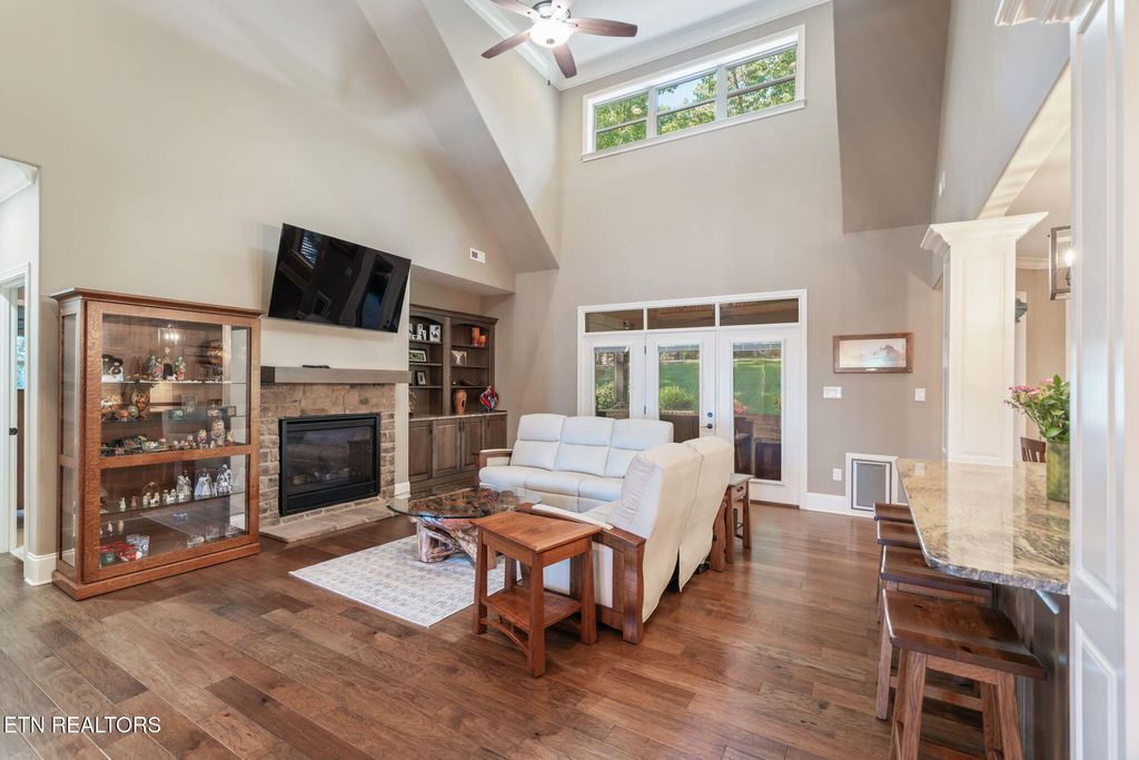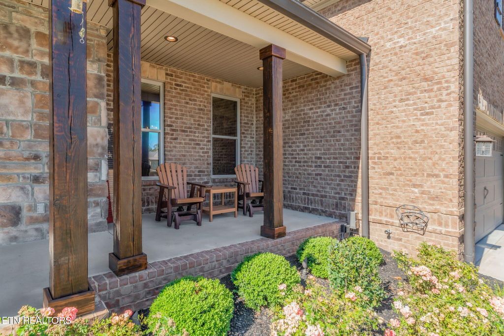 This stunning home was thoughtfully placed on one of Fox Creek's premier Smoky Mountain view lots, chosen for its privacy and exceptional views "” visible from the front porch and all front-facing windows. Inside and out, quality and comfort shine through. Notable upgrades include stone accents, shutters, a covered back porch with tongue-and-groove ceiling, a wood-burning fireplace, and automatic screens that lower and seal at the touch of a button. The fenced, professionally landscaped yard completes the outdoor oasis. The main-level primary suite features a spacious sitting area, bay windows with one-way film, and radiant heated flooring in the en suite. Every detail of this beautifully designed home blends elegance, function, and warmth.