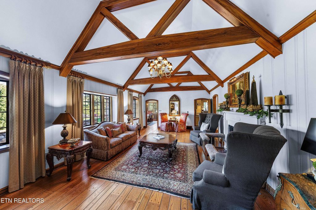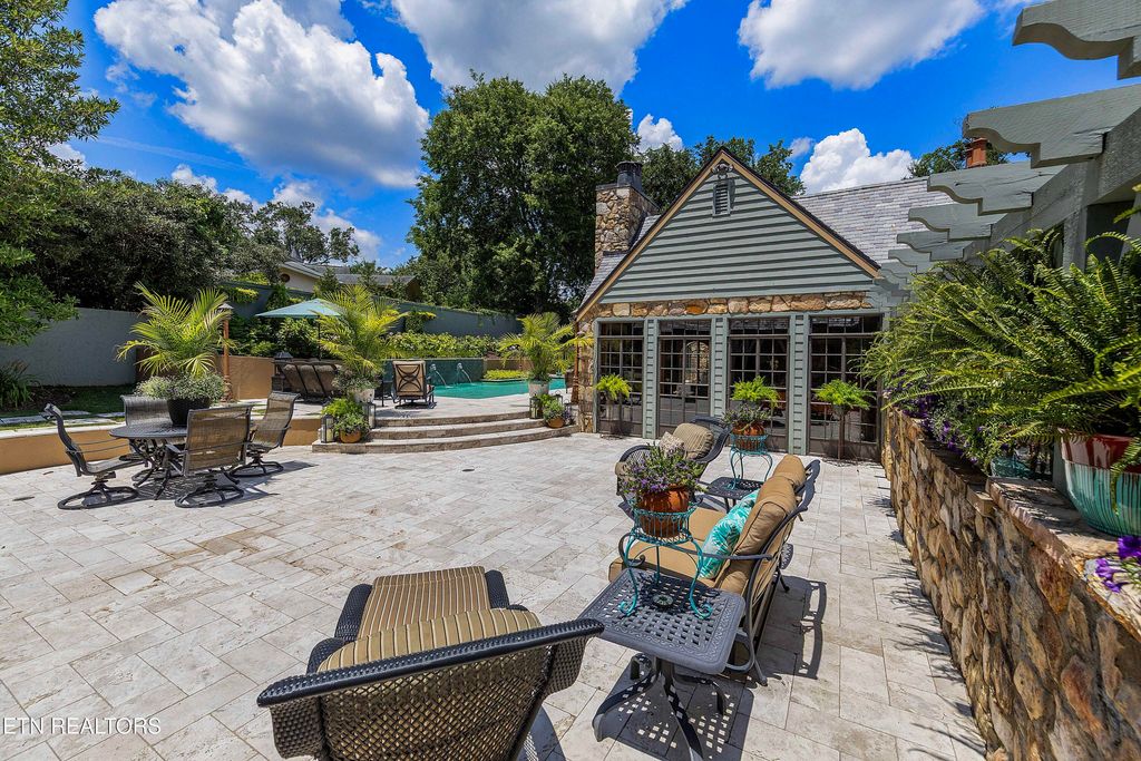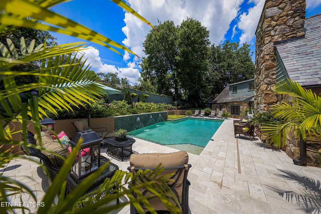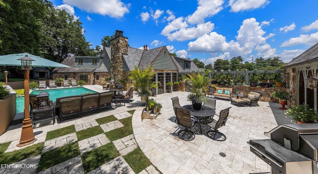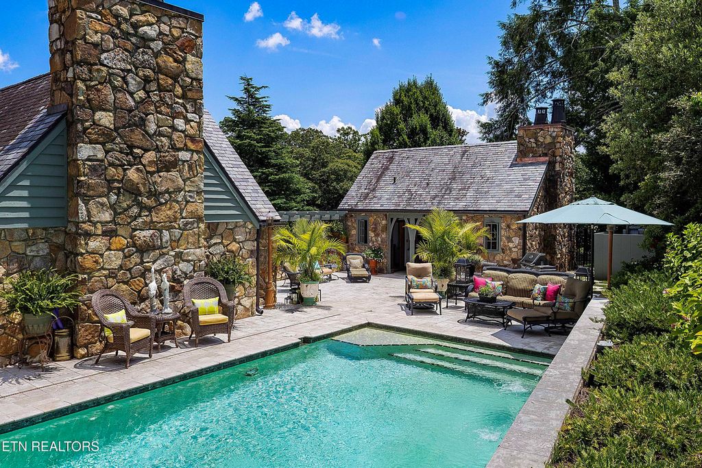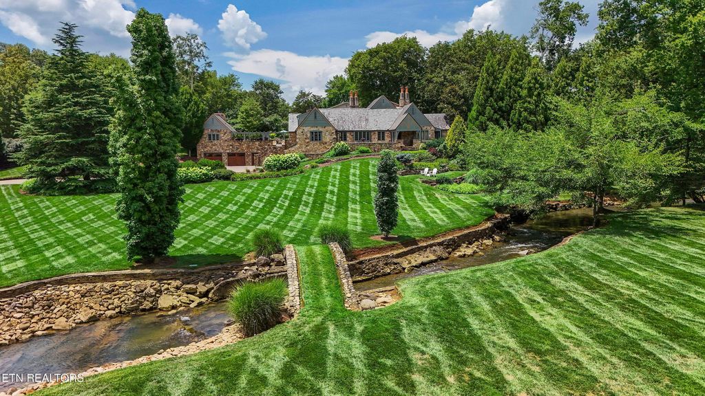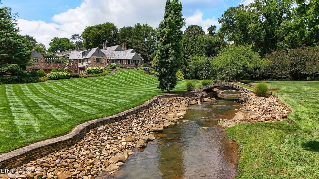 Arguably the most iconic home in Knoxville, is now being offered for sale for the first time in nearly 30 years. Rarely do homes of this prominence and notoriety come to market. A home where dreams are created. A home that will tell tales of great gatherings both large and small. A home that will provide sanctuary and rest. Welcome to 6203 Westland Drive - an iconic home that is a true jewel among gems within the historic homes of Knoxville. The incredible and expansive lush front lawn with gardens, mature trees, a babbling creek, and stone bridge capture your heart as you approach this elegant home. Through a secured gate, the brick paved circle drive welcomes guests and family to this special 1940's home crafted of stone. The formal living space with an expansive series of windows, focal fireplace, vaulted ceiling and exposed beams comes together to create the perfect venue for entertaining. The back of the home hosts the informal living space with a rich wood coffered ceiling, built-ins, and an expansive fireplace and mantle. A large open kitchen, which is seamlessly attached, has a large island/breakfast bar, stainless appliances, paneled refrigerator, glass-front cabinetry, ample storage along with a butler's pantry with additional sink, beverage fridge and storage. The formal dining room has space for sideboards and boasts large windows overlooking the front lawn and creek. Wood paneled walls and a wood coffered ceiling give a warm and inviting atmosphere to the parlor where books can be savored and deals made. The primary suite is spacious with ample natural light and a spacious bath for two with dual vanities, walk-in shower, soaking tub and opposing walk-in closets with rich wood cabinetry, shelving and hanging space. An additional bedroom with an attached bath completes the main level, and a large private bedroom suite with room for seating, built-ins, a reading bench, and a spacious bath is upstairs. Off of the kitchen is access to an upstairs bonus room perfect as a playroom, private living space or a room for your creative hobbies. The lower level of the home has the remaining bedroom with a stone fireplace and bath along with an exercise room and a wine cave for your treasured vintage wines. The back exterior of this home offers plenty of space for entertaining. Stone pavers surround the inground pool and water feature and offers uncovered vignettes for dining, sunning, or simply relaxing by the pool. On sunny summer days when a bit of shade is called for or crisp fall evenings when a cozy fire is just what you need, a spacious gazebo with vaulted ceilings, fireplace, wet bar, and exposed beams unite for outside living space that can be enjoyed throughout the seasons. A truly unique property that redefines your expectations and home where you can create an exceptional life
