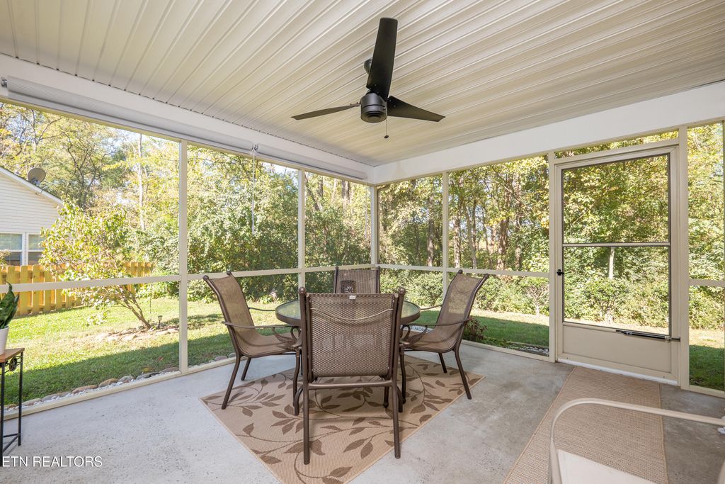 Step outside to your shaded screened-in porch for a relaxing retreat. As part of the Cove Ridge community, you'll benefit from provided lawn care, trash service, and exterior maintenance, including scheduled roof replacement! Residents also have access to fantastic amenities, including the community swimming pool. Recent improvements to the home include, but aren't limited to, the complete replacement of the AC, furnace, and air handling system, and the replacement of the water heater in September 2021. New solid surface quartz kitchen counter tops, kitchen sink, disposal, faucet, backsplash, and full kitchen LED recessed lighting. Bathrooms were recently renovated with new tub/shower & plumbing controls, repainted kitchen and bath cabinets. Removed & replaced front and rear landscaping and fresh paint throughout. Located in the desirable Hardin Valley area, you're just minutes from top-rated schools like Hardin Valley Academy and a wealth of shopping and dining options, and have quick access to Pellissippi Parkway for an easy commute throughout Knoxville and Oak Ridge. Don't miss this opportunity for a low-maintenance lifestyle in a prime location!''